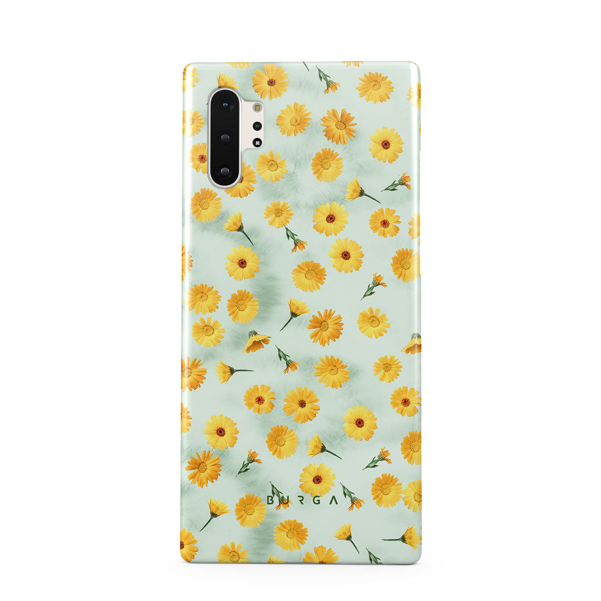 In our Sanctuary of Love Samsung Galaxy Note 10 Plus phone case, a soft mint marble meets a glowing pattern of yellow flowers that will surely add a splash of energy to your style while protecting your phone from dangerous falls.