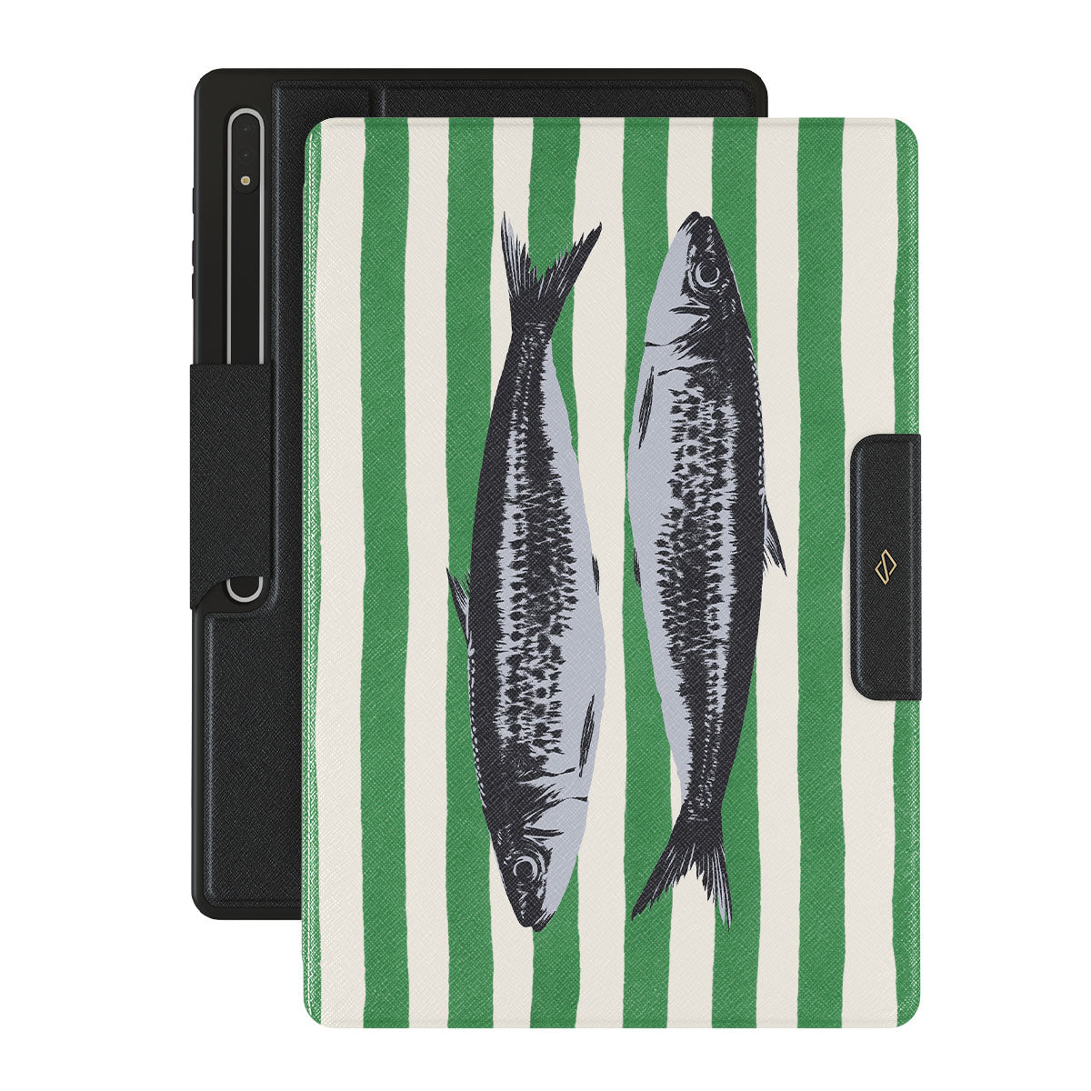 It’s like you’re riding a wave on a flamingo float, heading straight for a beach bar. This Samsung Galaxy Tab S10 Ultra folio case design is sardines, stripes, and sunshine in the same breath—chaotic, cool, and ready to drop that vacation vibe. Can you smell the sea breeze yet?