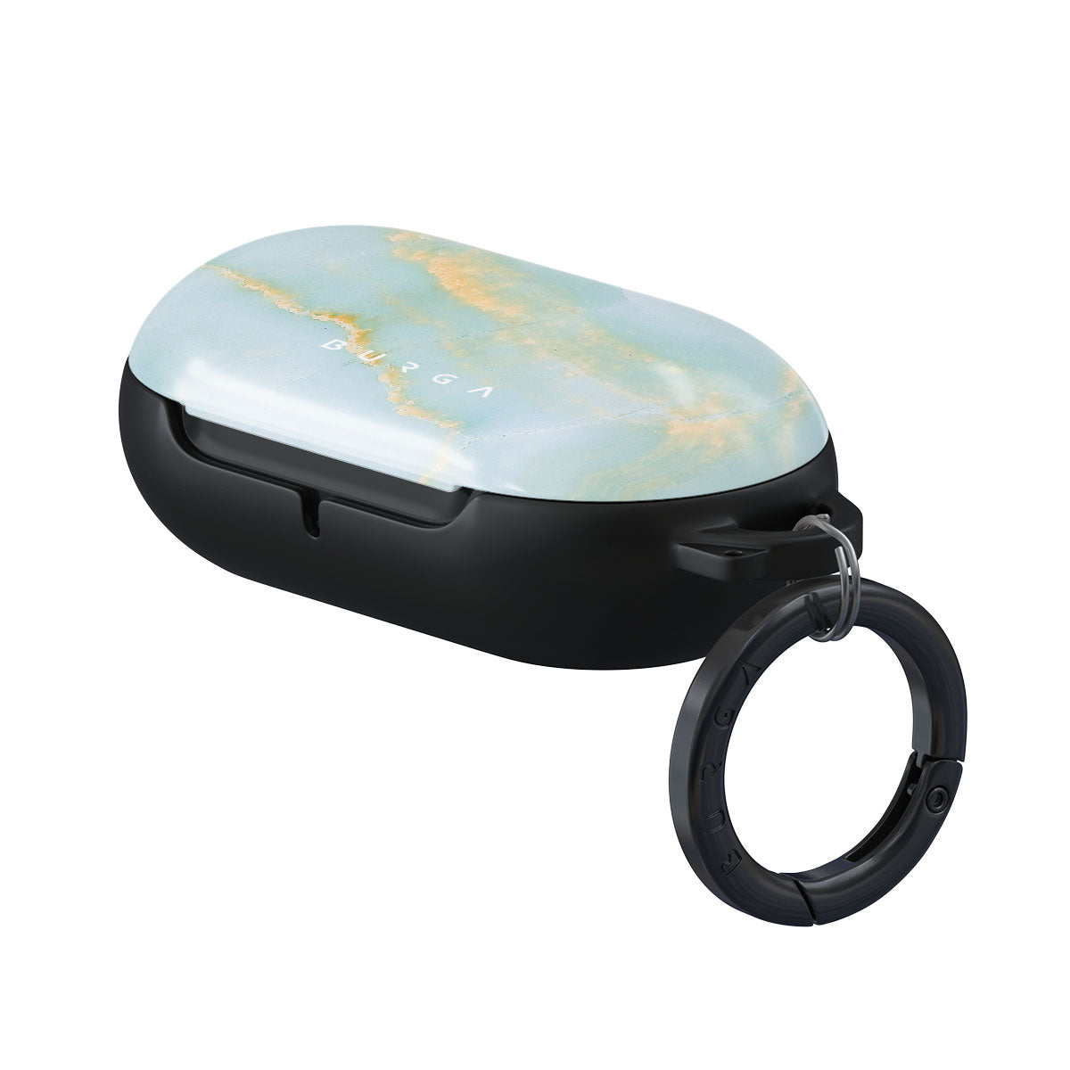 A delicate marble pattern of our Samsung Galaxy Buds Headphones case cover combines a pretty baby blue and soft sandy color adding a soft touch to y Our case while still protecting it from scratches and dents. Our case fits perfectly snug around Samsung Galaxy Buds Headphones. “Like a glove!” one might say. And it won’t disrupt the wireless charging capabilities of the newer model. There’s even an LED light indicator to prove it (don’t worry, wired charging still works, too). When fitted, the BURGA case will protect the delicate Samsung Galaxy Buds Headphones case beneath it from scratches, bumps, and drops while remaining scratch-free itself. Our signature design pattern prints are High Quality, and will never peel or fade away- thanks to our unique printing technology. And finally, a handy carabiner is there to make your life easier and more convenient: just snap it around your keys or belt loop and tackle the day head-on. Your music is right there by your side when you need it.