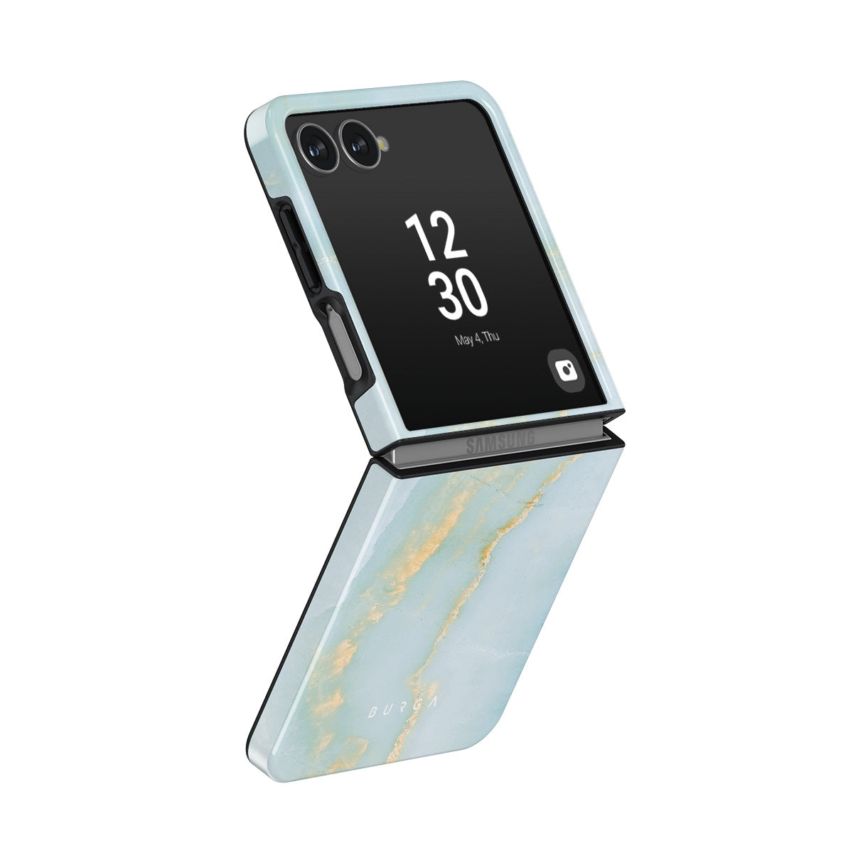 Samsung Galaxy Z Flip 7 phone case design. The delicate marble pattern that combines with pretty pastel colors adds a soft touch to your device while protecting it from falls.