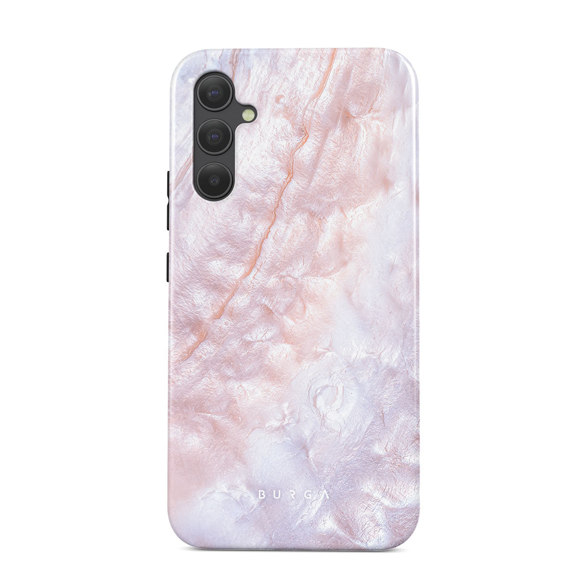 Have you wondered what the crown of a Mermaid would look like? Would it shine through the waters to lure in the sailors, or would it be as subtle as the pretty pattern found on a pastel seashell? Have this subtle sea shell inspired Samsung Galaxy A34 phone case in your collection and protect your phone in style.