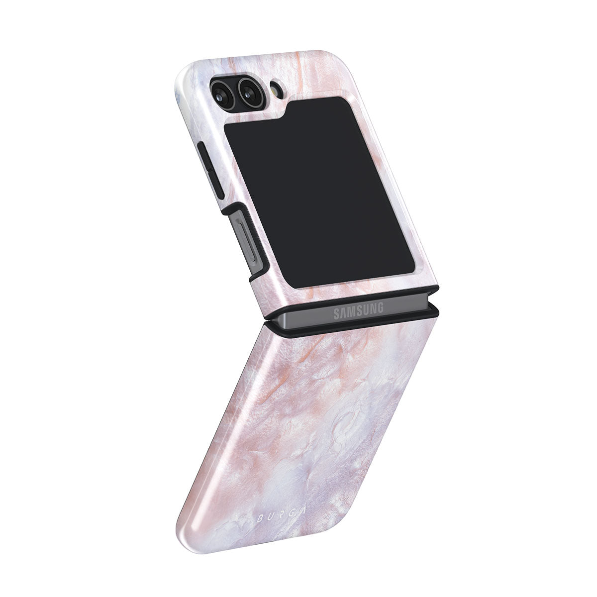 Have you wondered what the crown of a Mermaid would look like? Would it shine through the waters to lure in the sailors, or would it be as subtle as the pretty pattern found on a pastel seashell? Have this subtle sea shell inspired Samsung Galaxy Z Flip 5 phone case in your collection and protect your phone in style.