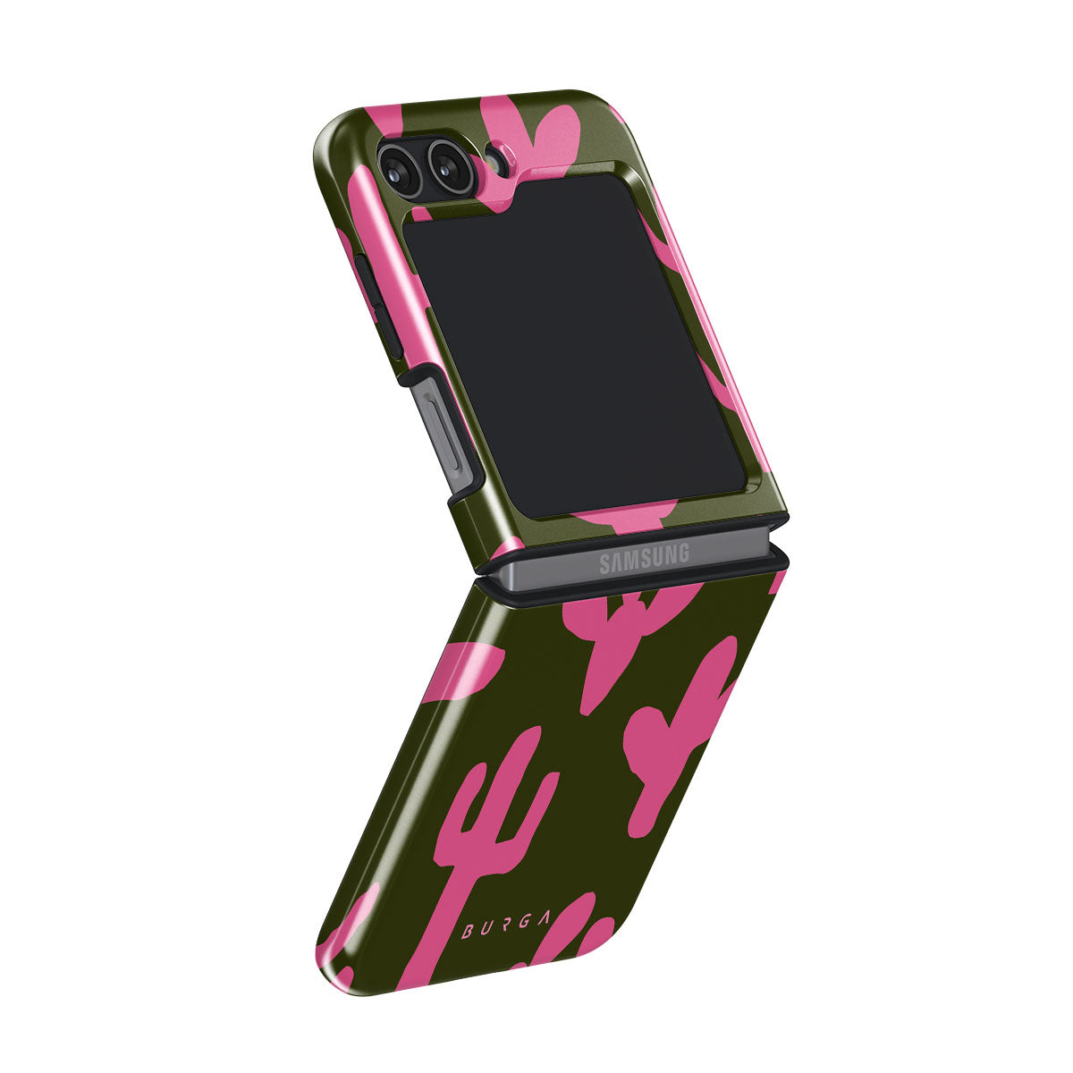 Step into a desert oasis at dusk, where vibrant pink cactuses bloom against a mysterious dark background. Serenade is a poetic fusion of resilience and beauty, turning your Samsung Galaxy Z Flip 5 phone case into a sanctuary of tranquility amidst the chaos of everyday life.