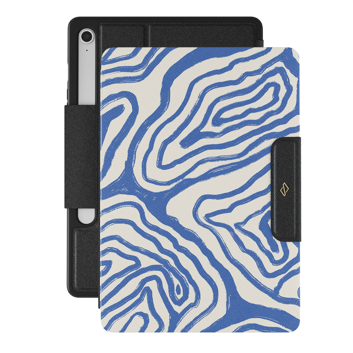The Seven Seas Samsung Galaxy Tab S10 FE folio case is a perfect accessory for those who love the ocean and seek to carry a piece of its magic with them. The delicate swirls that dance in shades of oceanic blue inspire a sense of adventure. At the same time, they invite us to pause and appreciate the fluidity and serenity of the sea.
