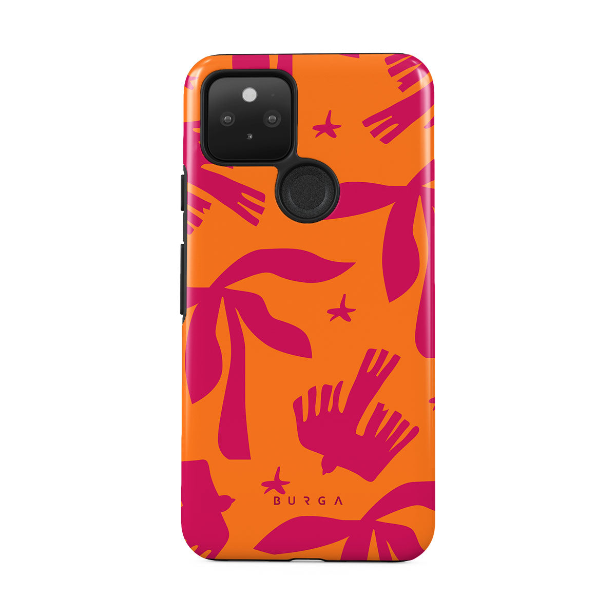Meet Siesta, the Google Pixel 5 phone case that turns every day into a tropical getaway, your own slice of paradise. The unapologetically vivid oranges and bright pinks capture the spirit of warm, sunny afternoons and the laid-back vibes of a leisurely siesta.