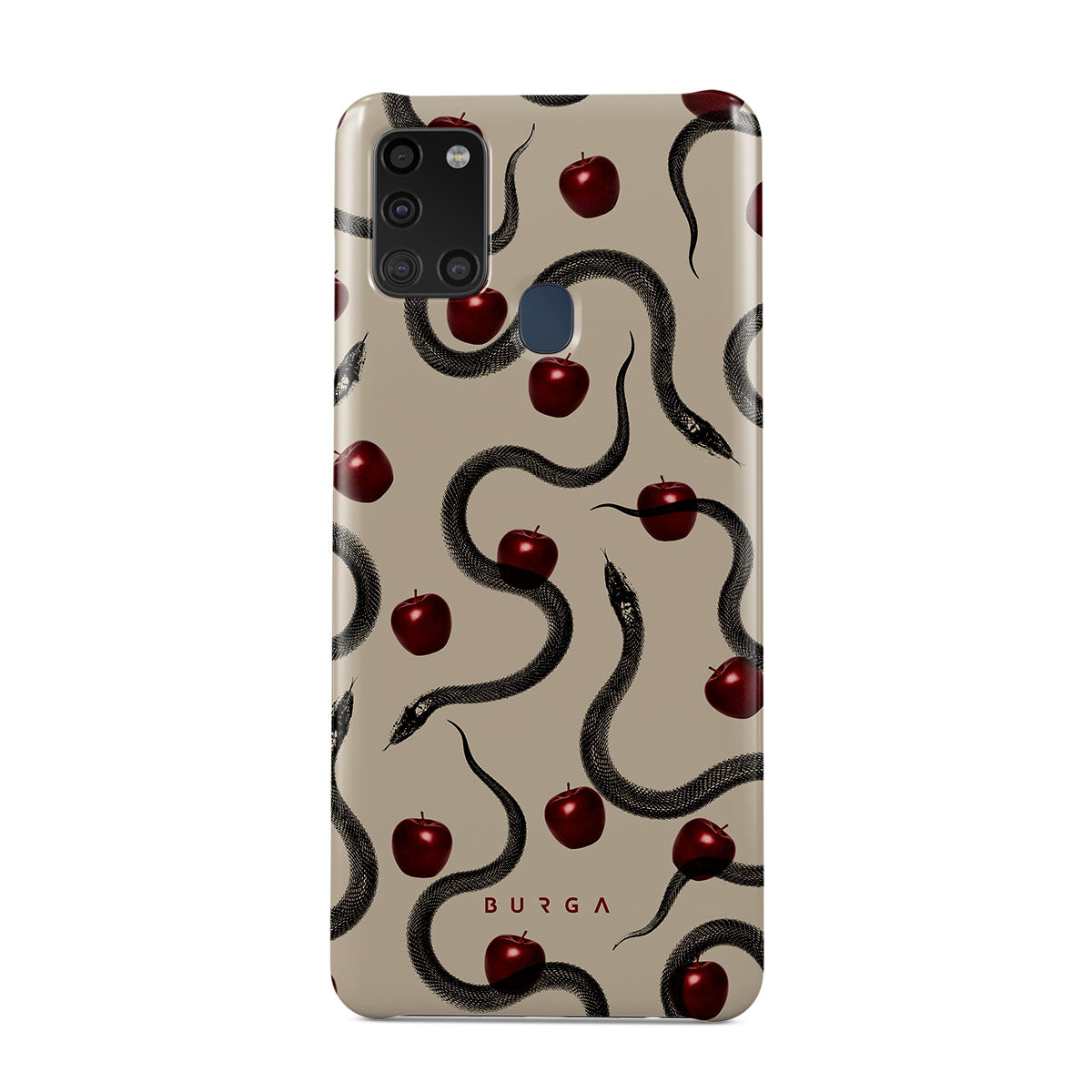 Lush and provocative, this Samsung Galaxy A21s 4G phone case design pulls you into a story as old as time. The apples glow with promise, the serpents coil with strength. Sinful is a reminder that the sweetest temptations often hide the sharpest edges.