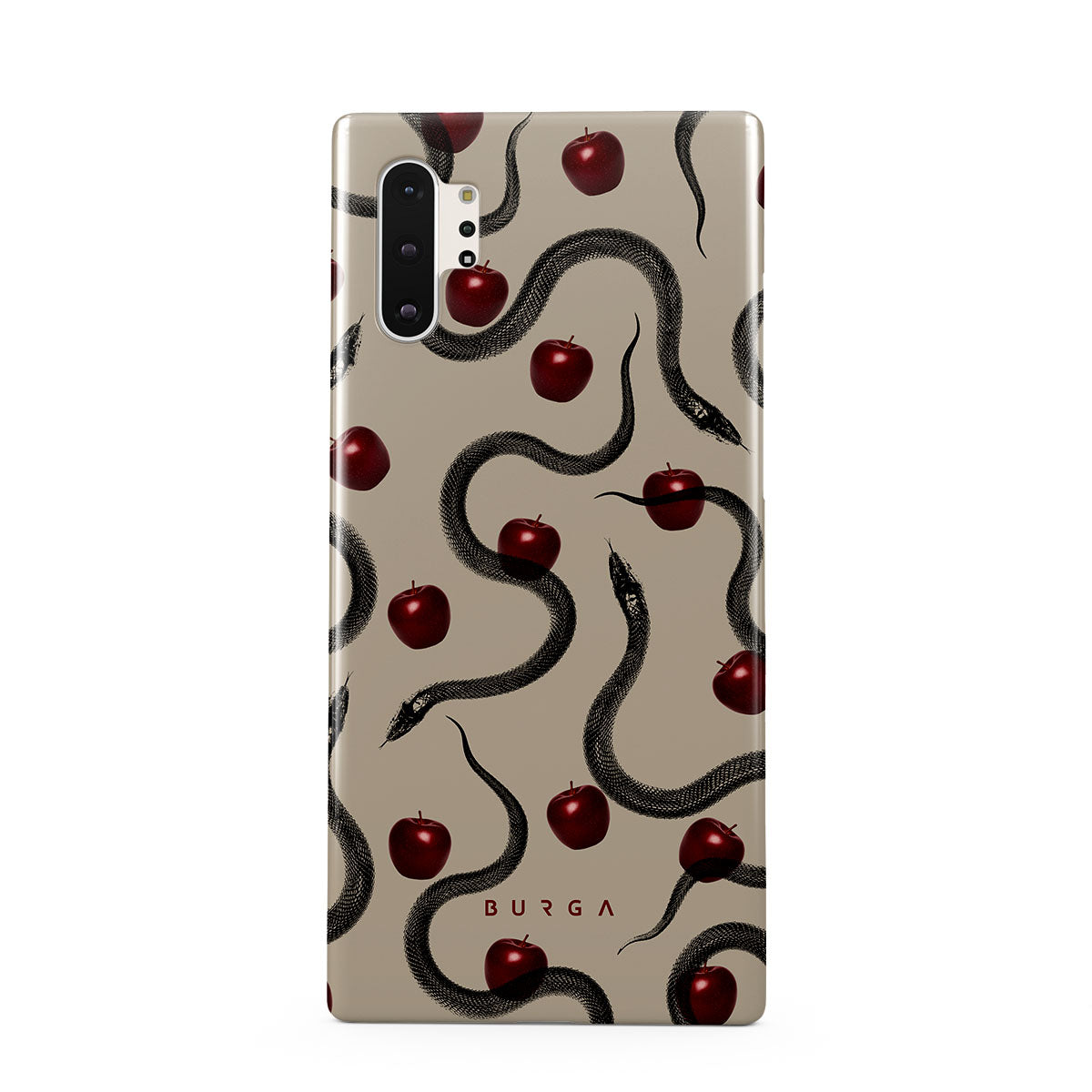 Lush and provocative, this Samsung Galaxy Note 10 Plus phone case design pulls you into a story as old as time. The apples glow with promise, the serpents coil with strength. Sinful is a reminder that the sweetest temptations often hide the sharpest edges.