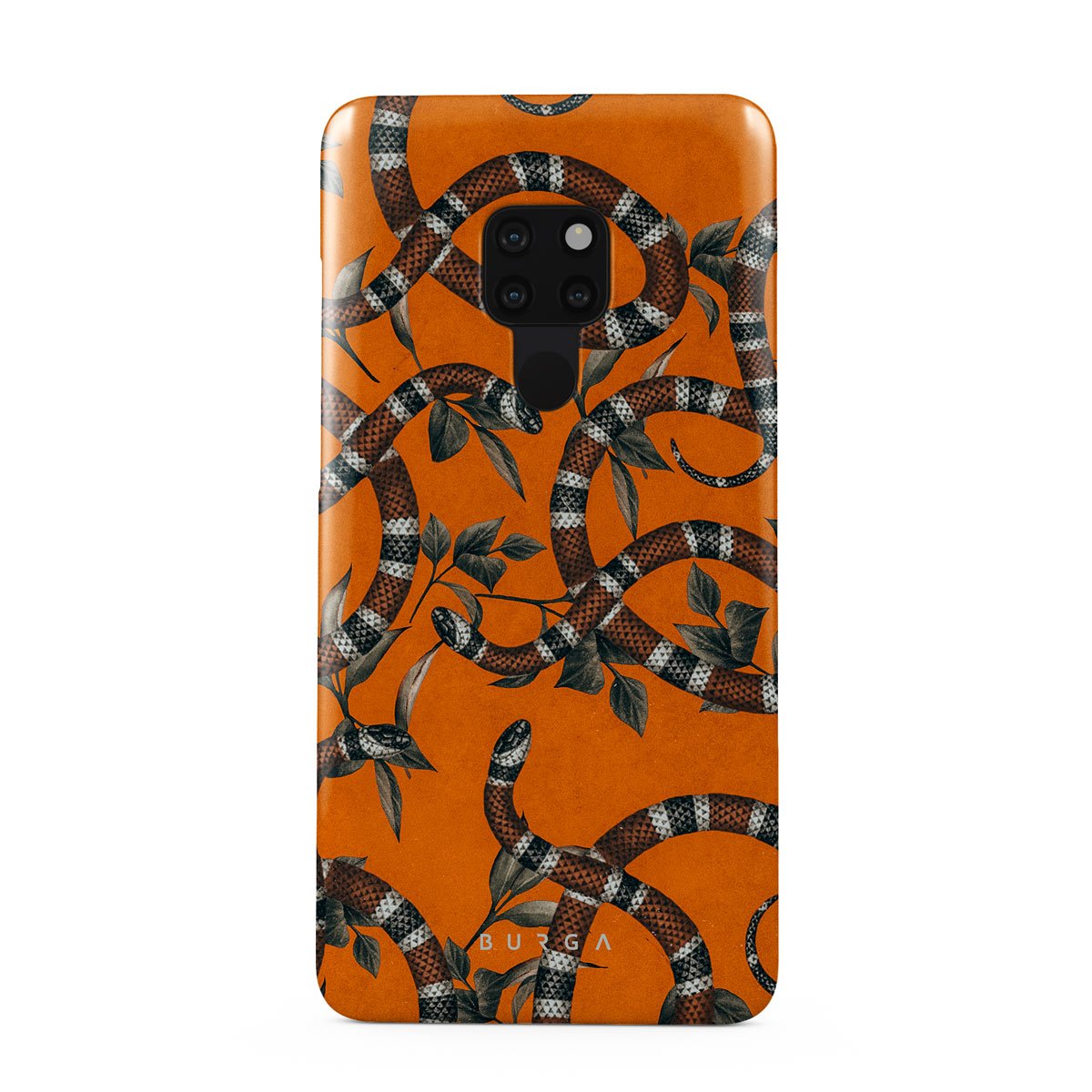 Take a bit of fierceness with yourself with our bright orange and dangerously beautiful Huawei Mate 20 phone case with a snake pattern. This case is real eye candy for fashion lovers and just as needed for those who strive to keep their phones protected.