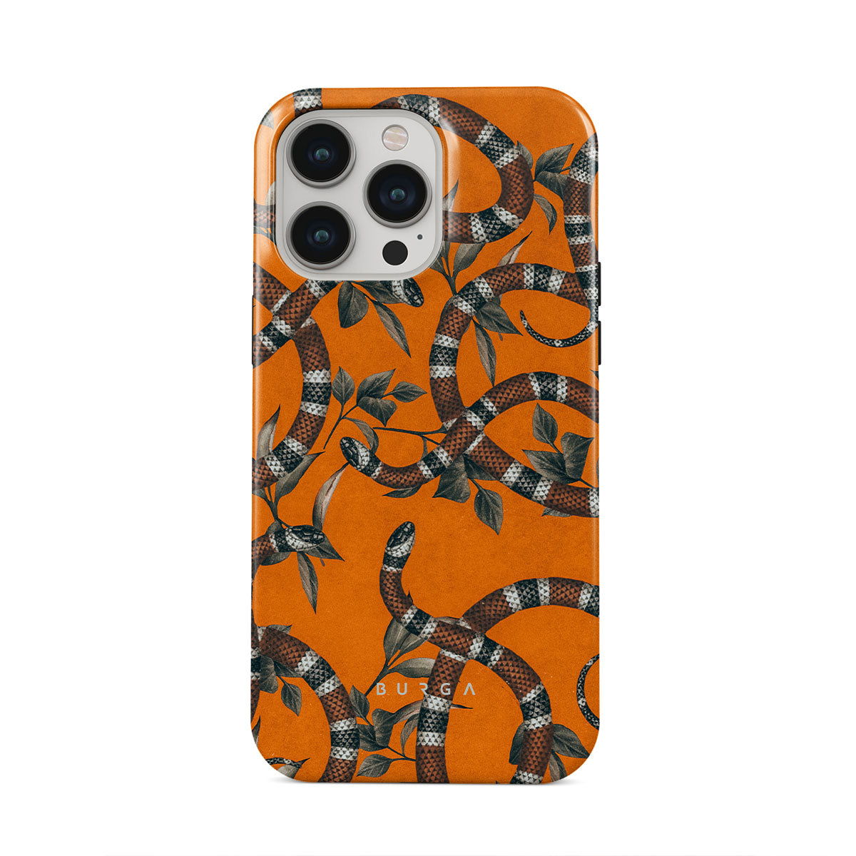 Take a bit of fierceness with yourself with our bright orange and dangerously beautiful iPhone 13 Pro phone case with a snake pattern. This case is real eye candy for fashion lovers and just as needed for those who strive to keep their phones protected.