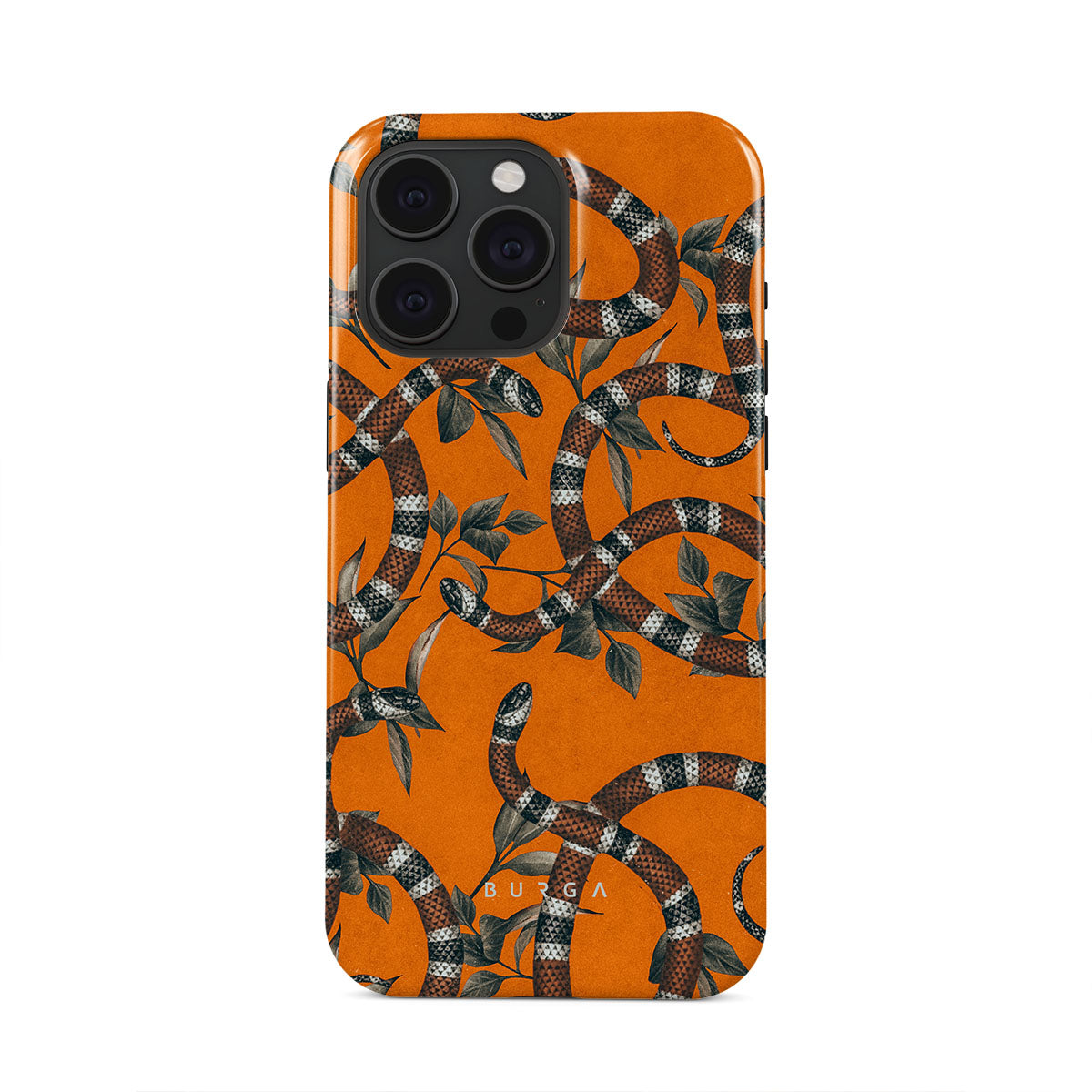 Take a bit of fierceness with yourself with our bright orange and dangerously beautiful iPhone 15 Pro phone case with a snake pattern. This case is real eye candy for fashion lovers and just as needed for those who strive to keep their phones protected.