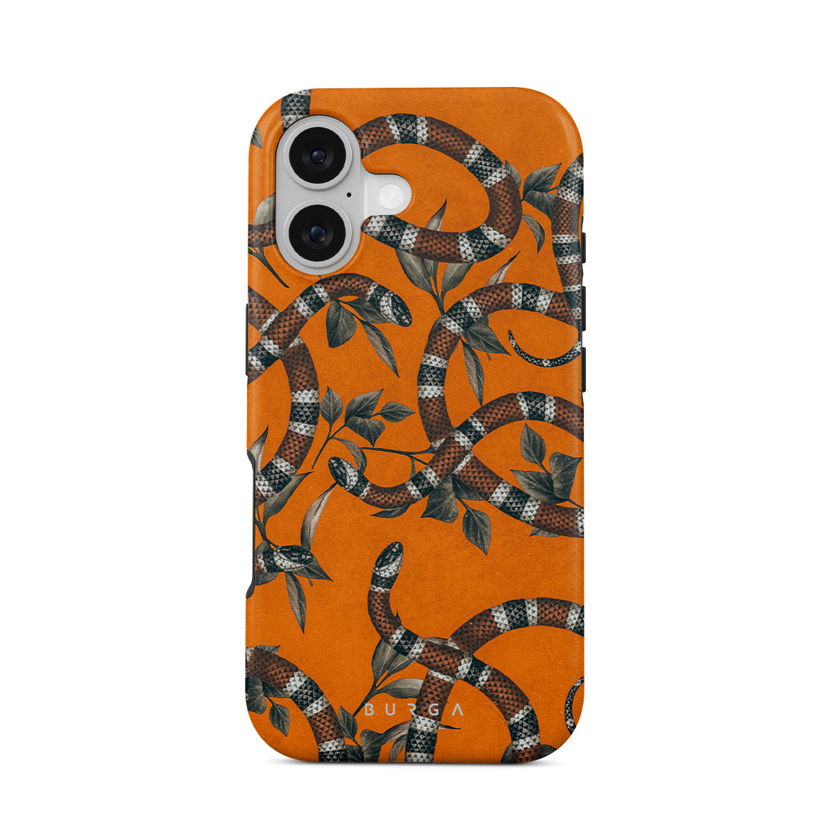 Take a bit of fierceness with yourself with our bright orange and dangerously beautiful iPhone 17 phone case with a snake pattern. This case is real eye candy for fashion lovers and just as needed for those who strive to keep their phones protected.