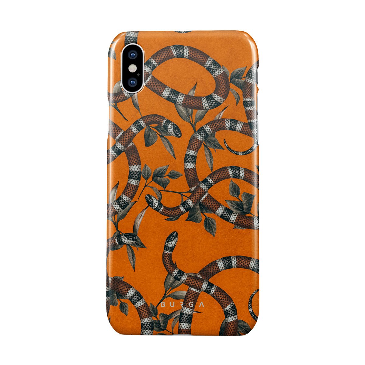 Take a bit of fierceness with yourself with our bright orange and dangerously beautiful iPhone XS Max phone case with a snake pattern. This case is real eye candy for fashion lovers and just as needed for those who strive to keep their phones protected.