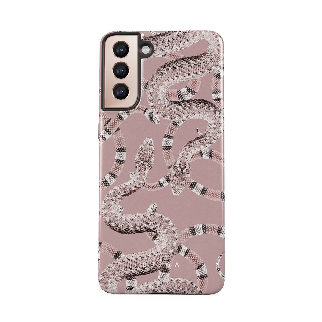 Bring the fierceness with our Poolside Glam Samsung Galaxy S21 Plus phone case. With the pastel pink case featuring snakes, let everyone know that you can always stand for yourself no matter your kind nature. Make a statement and protect your phone at the same time.
