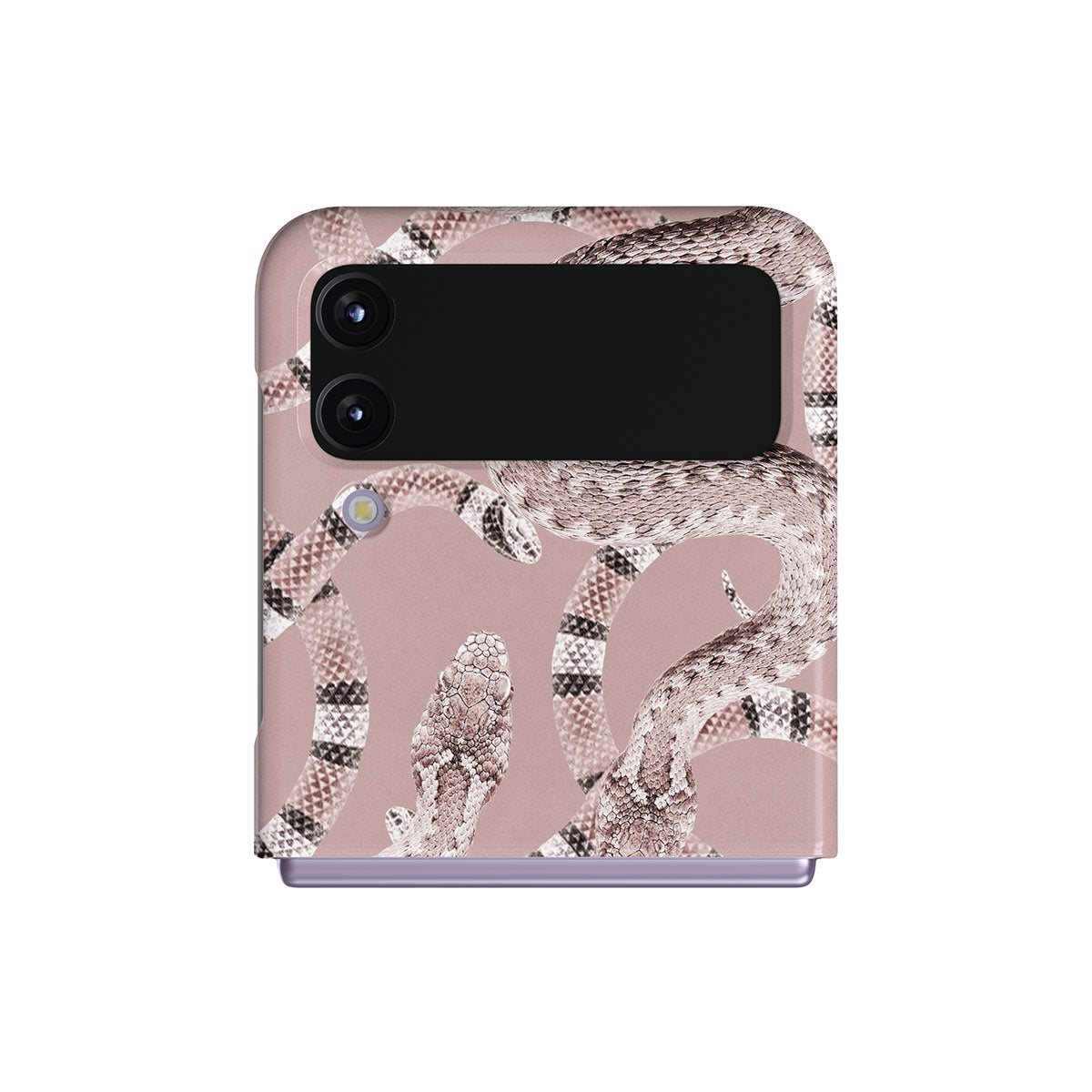 Bring the fierceness with our Poolside Glam Samsung Galaxy Z Flip 4 phone case. With the pastel pink case featuring snakes, let everyone know that you can always stand for yourself no matter your kind nature. Make a statement and protect your phone at the same time.