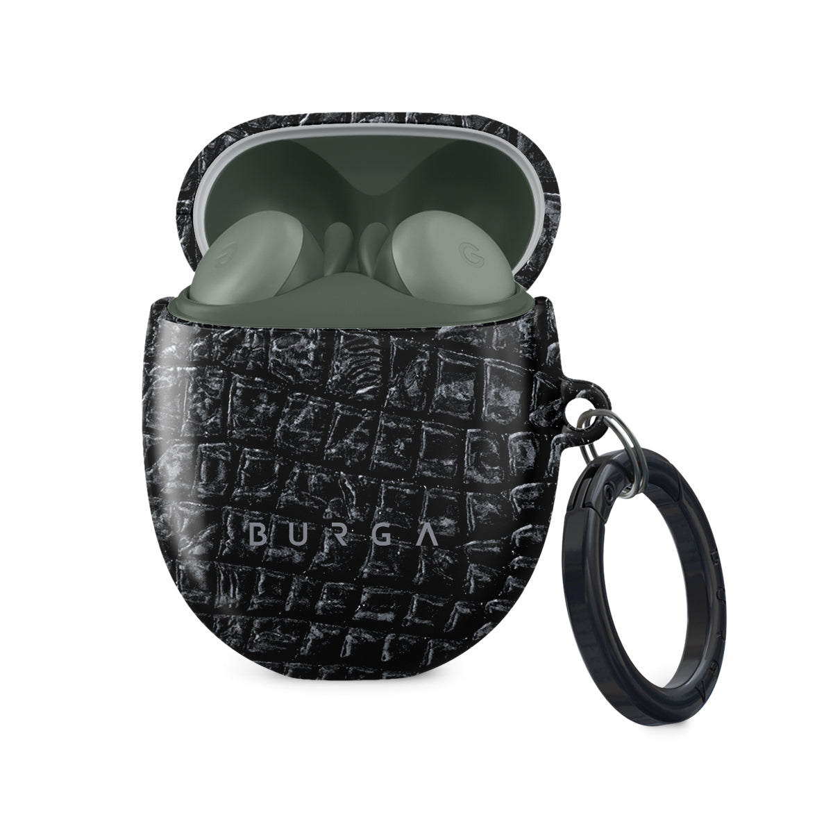 Our Reaper's Touch Google Pixel Buds A case cover features a dangerously beautiful snakeskin design in dark black. Add some confidence to your style, and keep your Google Pixel Buds A case covered and protected from the dangers of the world while looking stunning. Our case fits perfectly snug around Google Pixel Buds A . “Like a glove!” one might say. And it won’t disrupt the wireless charging capabilities of the newer model. There’s even an LED light indicator to prove it (don’t worry, wired charging still works, too). When fitted, the BURGA case will protect the delicate Google Pixel Buds A case beneath it from scratches, bumps, and drops while remaining scratch-free itself. Our signature design pattern prints are High Quality, and will never peel or fade away- thanks to our unique printing technology. And finally, a handy carabiner is there to make your life easier and more convenient: just snap it around your keys or belt loop and tackle the day head-on. Your music is right there by your side when you need it.