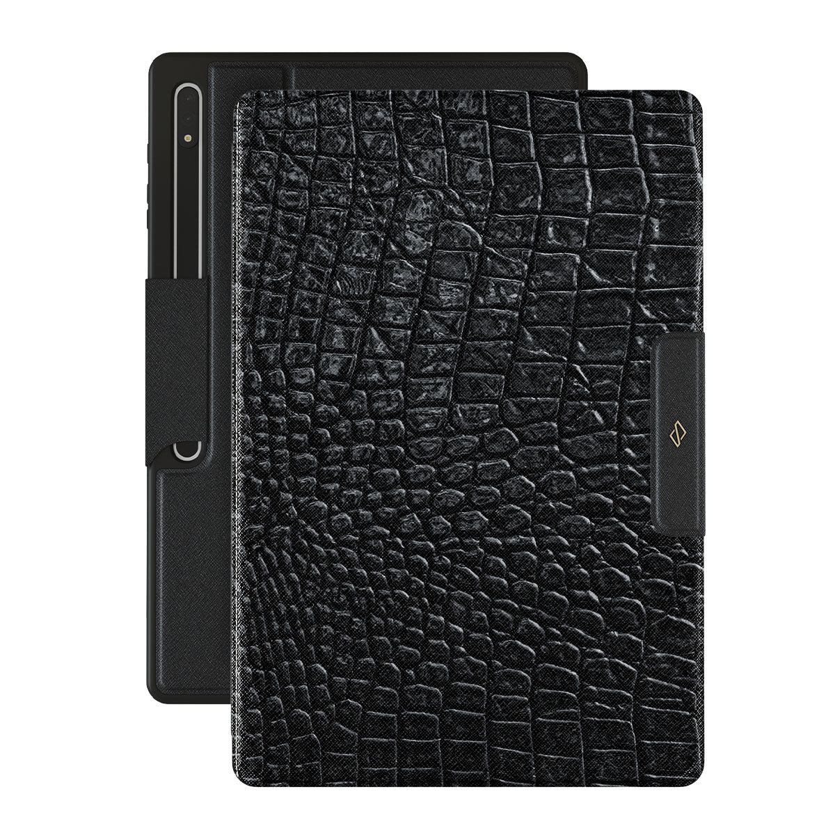 Our Reaper's Touch Samsung Galaxy Tab S9 Ultra folio case cover features a classic snakeskin design in dark black. The dangerous animal print will add confidence and a touch of luxury to your style while transforming your Galaxy Tab into a fashion accessory.
