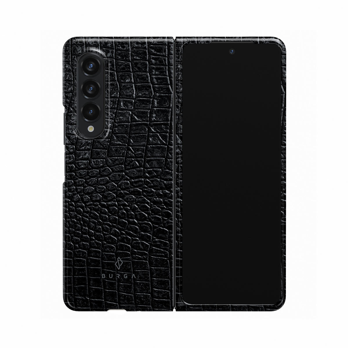 Our Reaper's Touch Samsung Galaxy Z Fold 3 phone case cover features a classic snakeskin design in dark black. The dangerous animal print will add confidence and a touch of luxury to your style while transforming your phone into a fashion accessory.