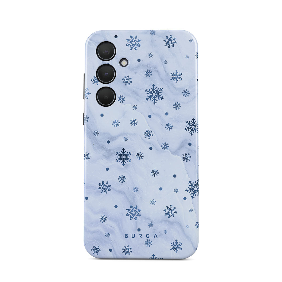 Our Ice Queen Samsung Galaxy A35 phone case combines the softest light blue marble design with a minimalistic snowflake pattern, this way creating the ever-mesmerizing effect of elegant snowflakes dance that only the magical winter days are known for. Keep your device looking elegant while keeping it safe and sound.
