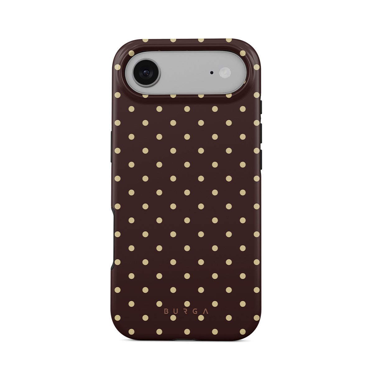 Playful yet polished, our Sorry Busy iPhone Air phone case design features a warm brown background sprinkled with delicate beige polka dots, blending charm with a professional edge. It's for those who keep it stylish, even when fully booked and thriving.