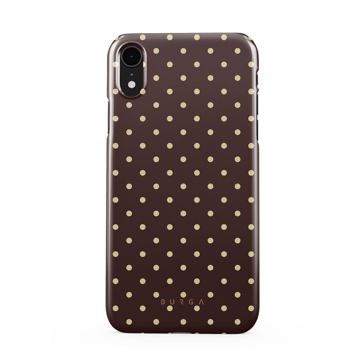 Playful yet polished, our Sorry Busy iPhone XR phone case design features a warm brown background sprinkled with delicate beige polka dots, blending charm with a professional edge. It's for those who keep it stylish, even when fully booked and thriving.