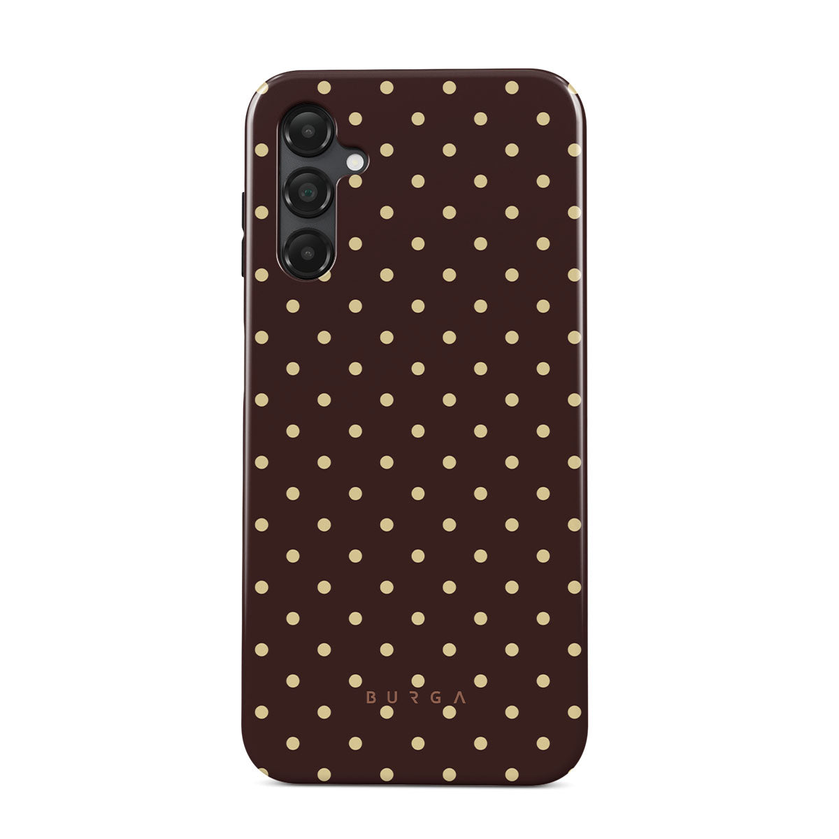 Playful yet polished, our Sorry Busy Samsung Galaxy A14 5G phone case design features a warm brown background sprinkled with delicate beige polka dots, blending charm with a professional edge. It's for those who keep it stylish, even when fully booked and thriving.