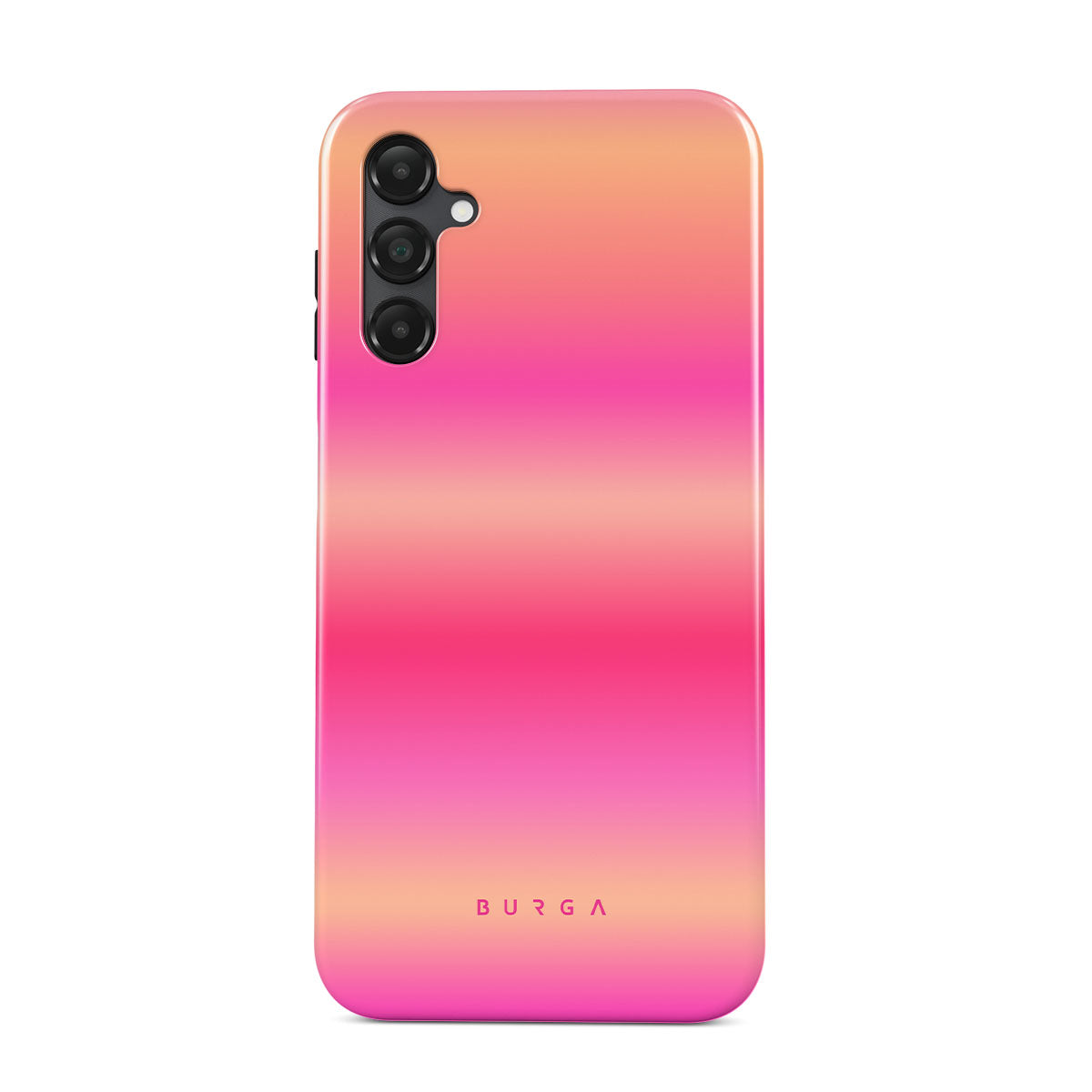 Introducing SPF100—a Samsung Galaxy A25 phone case that's as hot as a summer's day. Featuring a gradient of vivid pinks and warm oranges, this design radiates bold, vibrant energy, reminiscent of sun-kissed skin and tropical getaways.