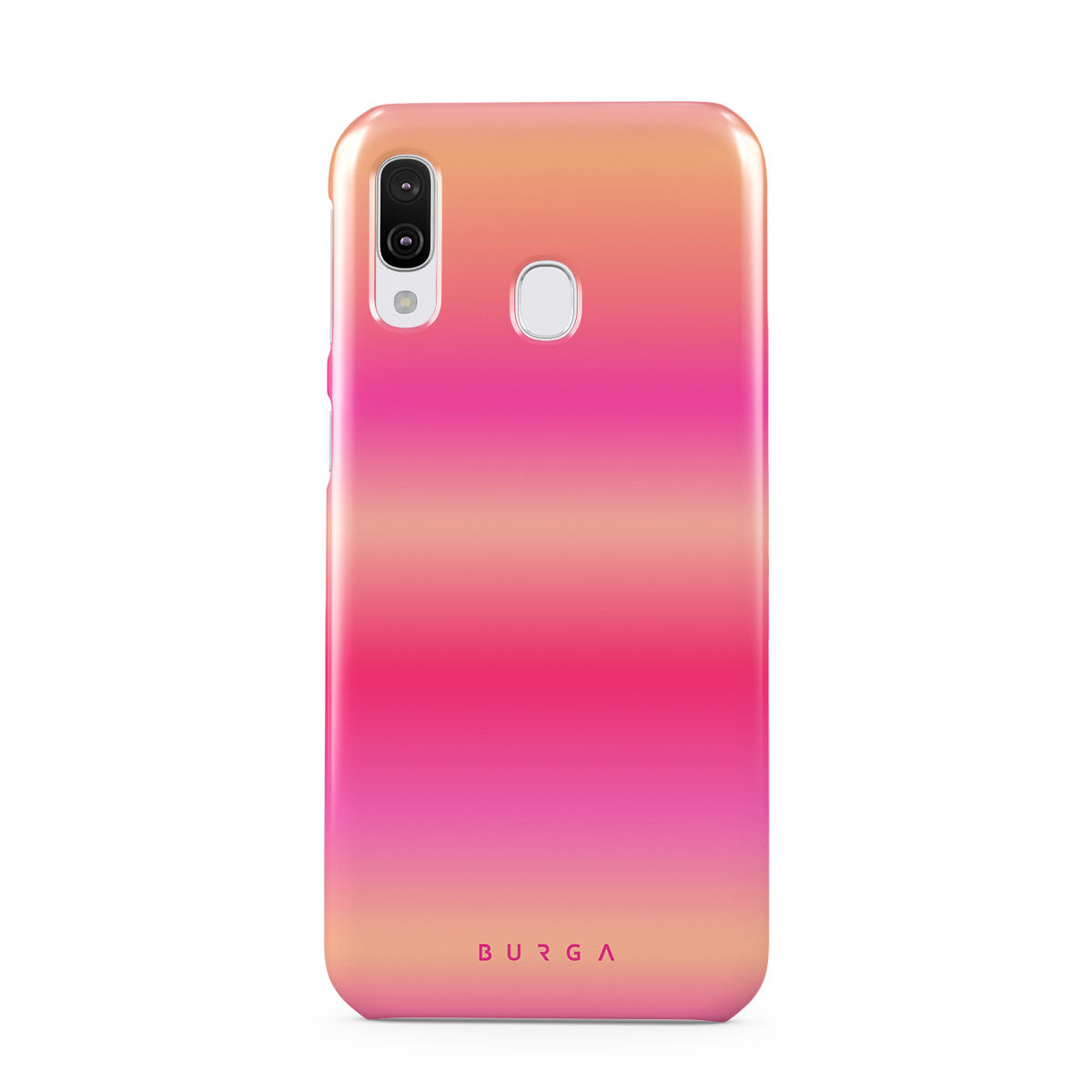 Introducing SPF100—a Samsung Galaxy A40 phone case that's as hot as a summer's day. Featuring a gradient of vivid pinks and warm oranges, this design radiates bold, vibrant energy, reminiscent of sun-kissed skin and tropical getaways.