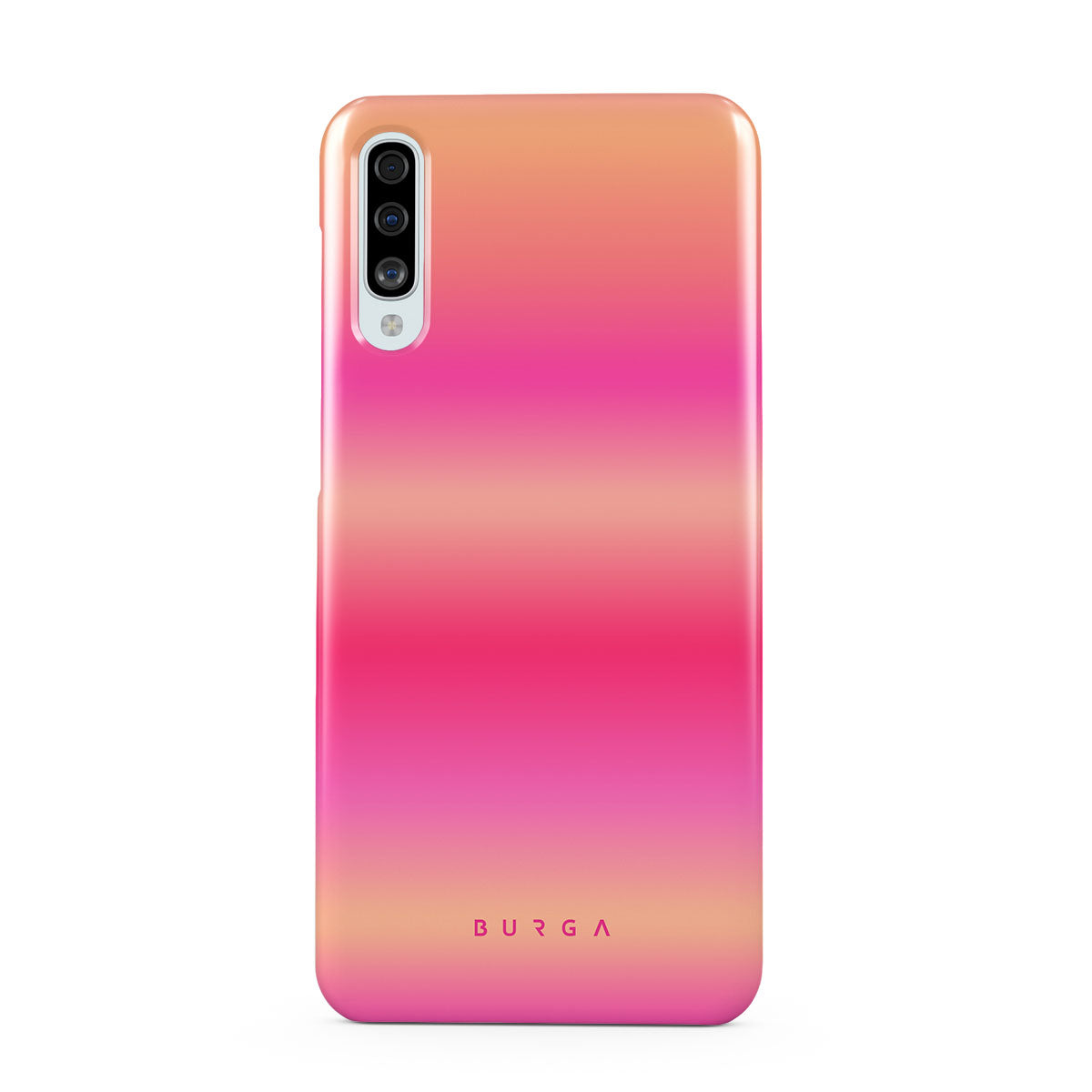 Introducing SPF100—a Samsung Galaxy A50 phone case that's as hot as a summer's day. Featuring a gradient of vivid pinks and warm oranges, this design radiates bold, vibrant energy, reminiscent of sun-kissed skin and tropical getaways.