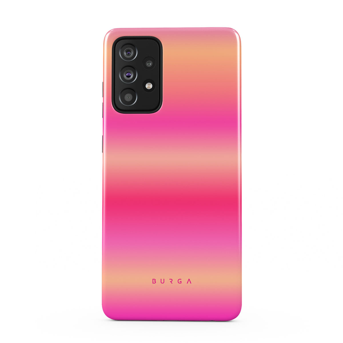 Introducing SPF100—a Samsung Galaxy A52 / A52S 4G / 5G phone case that's as hot as a summer's day. Featuring a gradient of vivid pinks and warm oranges, this design radiates bold, vibrant energy, reminiscent of sun-kissed skin and tropical getaways.