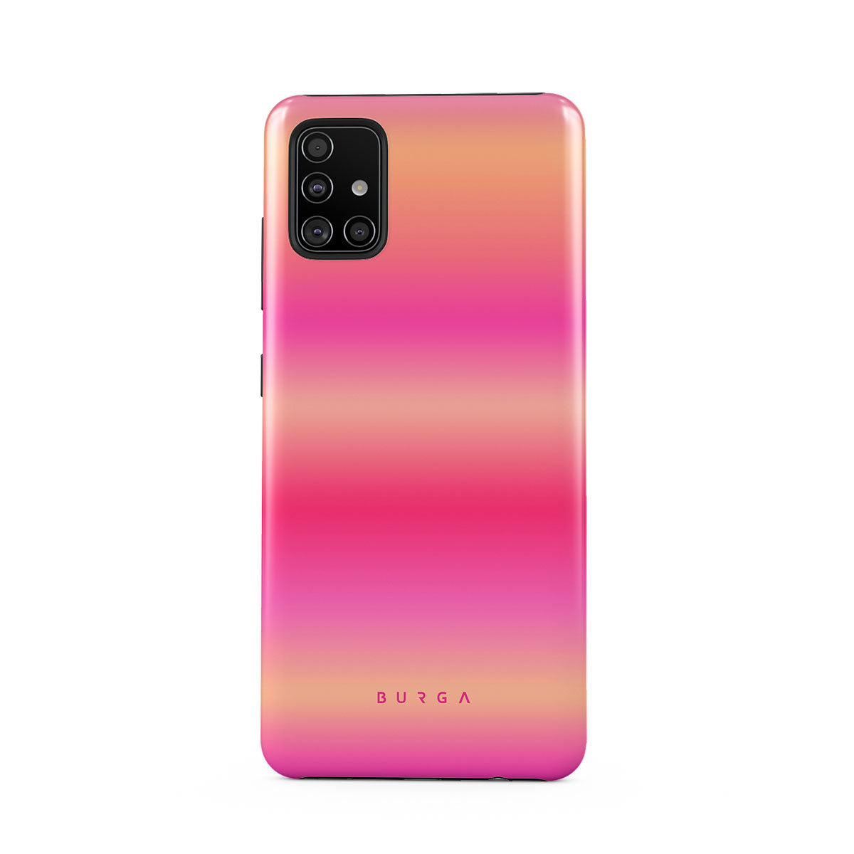 Introducing SPF100—a Samsung Galaxy A71 4G phone case that's as hot as a summer's day. Featuring a gradient of vivid pinks and warm oranges, this design radiates bold, vibrant energy, reminiscent of sun-kissed skin and tropical getaways.