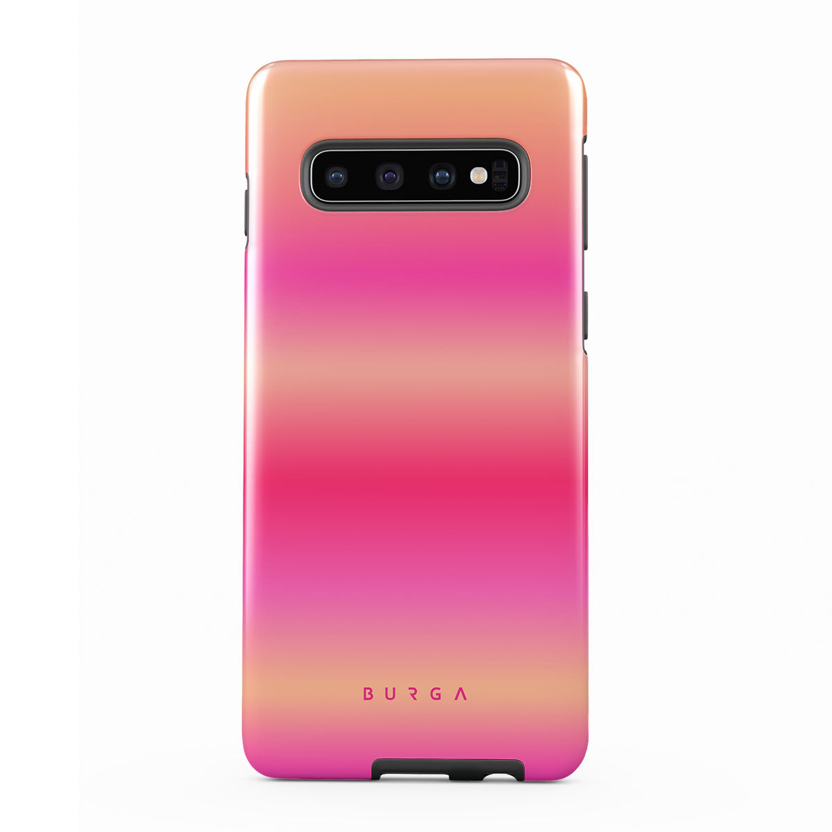 Introducing SPF100—a Samsung Galaxy S10 4G phone case that's as hot as a summer's day. Featuring a gradient of vivid pinks and warm oranges, this design radiates bold, vibrant energy, reminiscent of sun-kissed skin and tropical getaways.