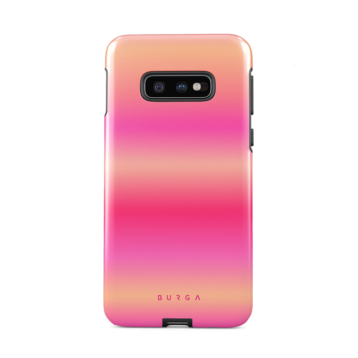 Introducing SPF100—a Samsung Galaxy S10E phone case that's as hot as a summer's day. Featuring a gradient of vivid pinks and warm oranges, this design radiates bold, vibrant energy, reminiscent of sun-kissed skin and tropical getaways.