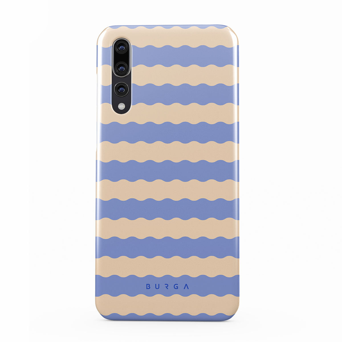 Dive into the cool, refreshing style of our Splash design–a dynamic Huawei P20 phone case featuring playful, wavy stripes of serene ocean blue and soft sandy beige. Perfect for those who love to make a splash with their accessories.