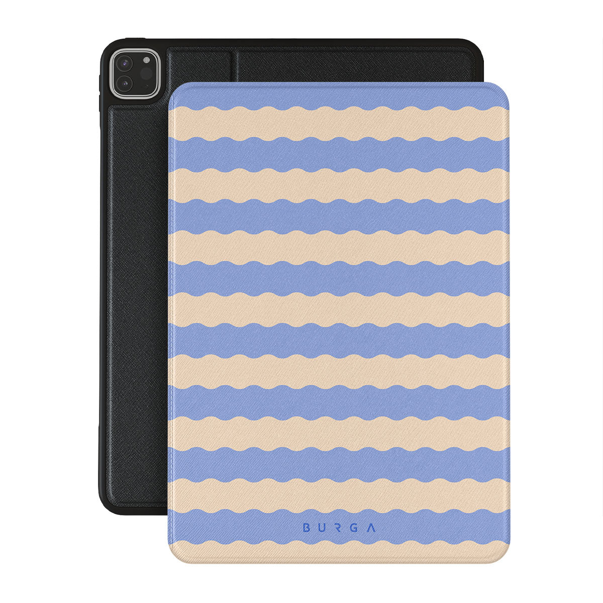 Dive into the cool, refreshing style of our Splash design–a dynamic iPad Pro 11 (4th/3rd Gen) folio case featuring playful, wavy stripes of serene ocean blue and soft sandy beige. Perfect for those who love to make a splash with their accessories.