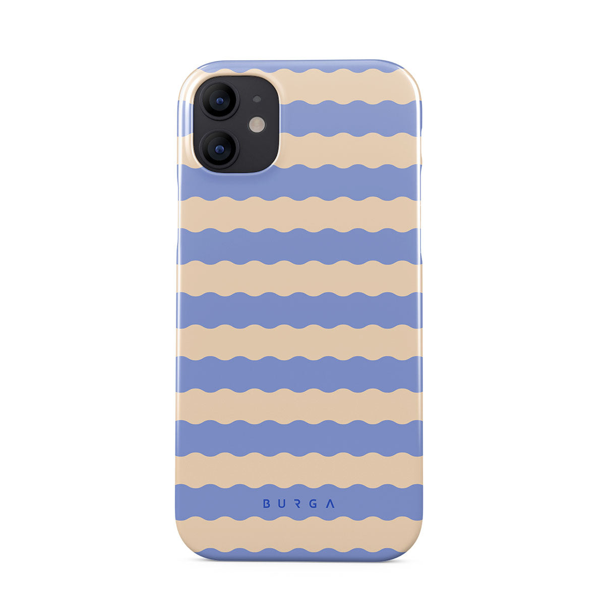 Dive into the cool, refreshing style of our Splash design–a dynamic iPhone 12 Mini phone case featuring playful, wavy stripes of serene ocean blue and soft sandy beige. Perfect for those who love to make a splash with their accessories.