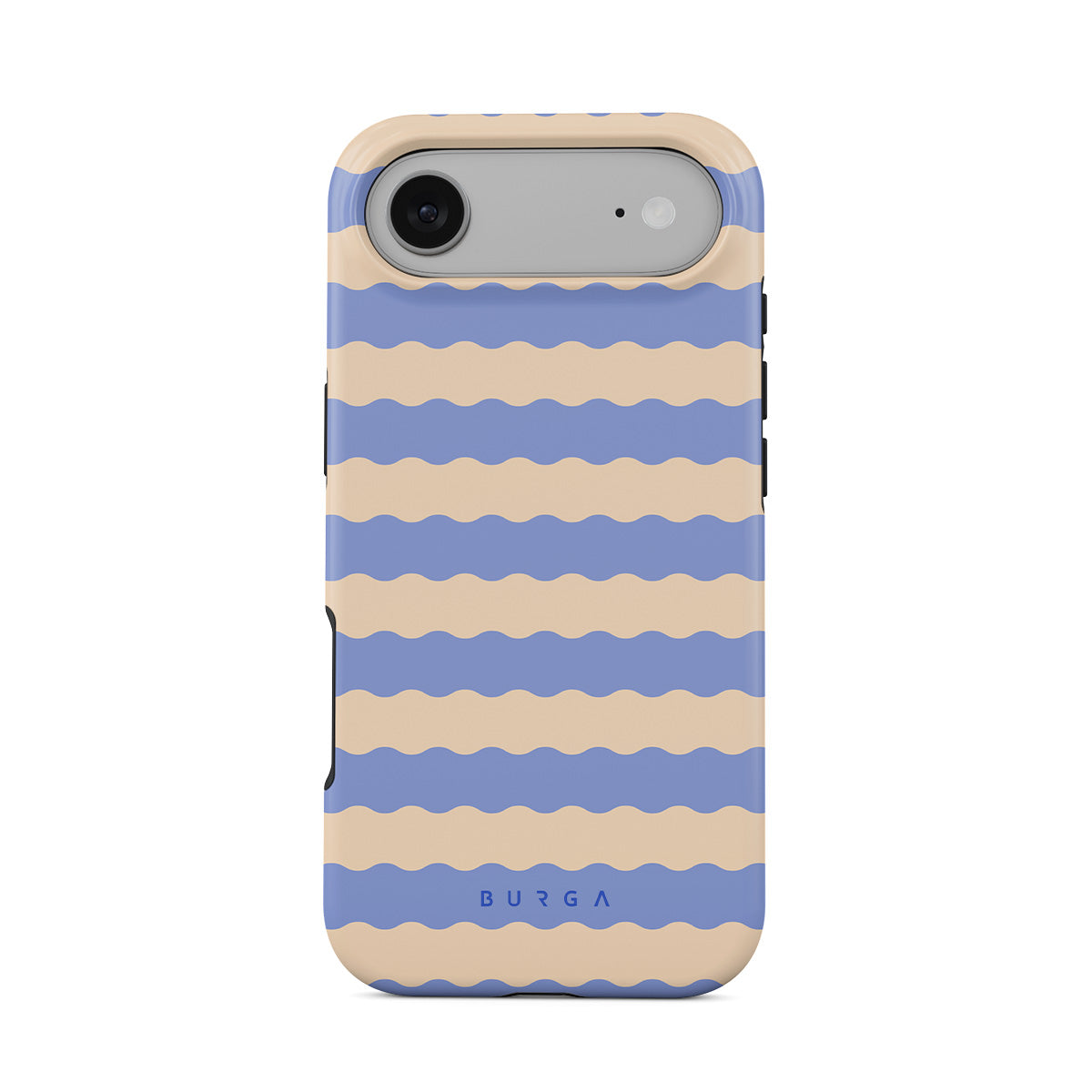 Dive into the cool, refreshing style of our Splash design–a dynamic iPhone Air phone case featuring playful, wavy stripes of serene ocean blue and soft sandy beige. Perfect for those who love to make a splash with their accessories.