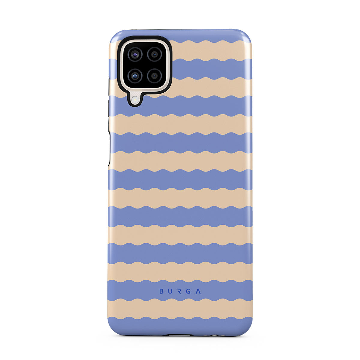 Dive into the cool, refreshing style of our Splash design–a dynamic Samsung Galaxy A12 4G phone case featuring playful, wavy stripes of serene ocean blue and soft sandy beige. Perfect for those who love to make a splash with their accessories.