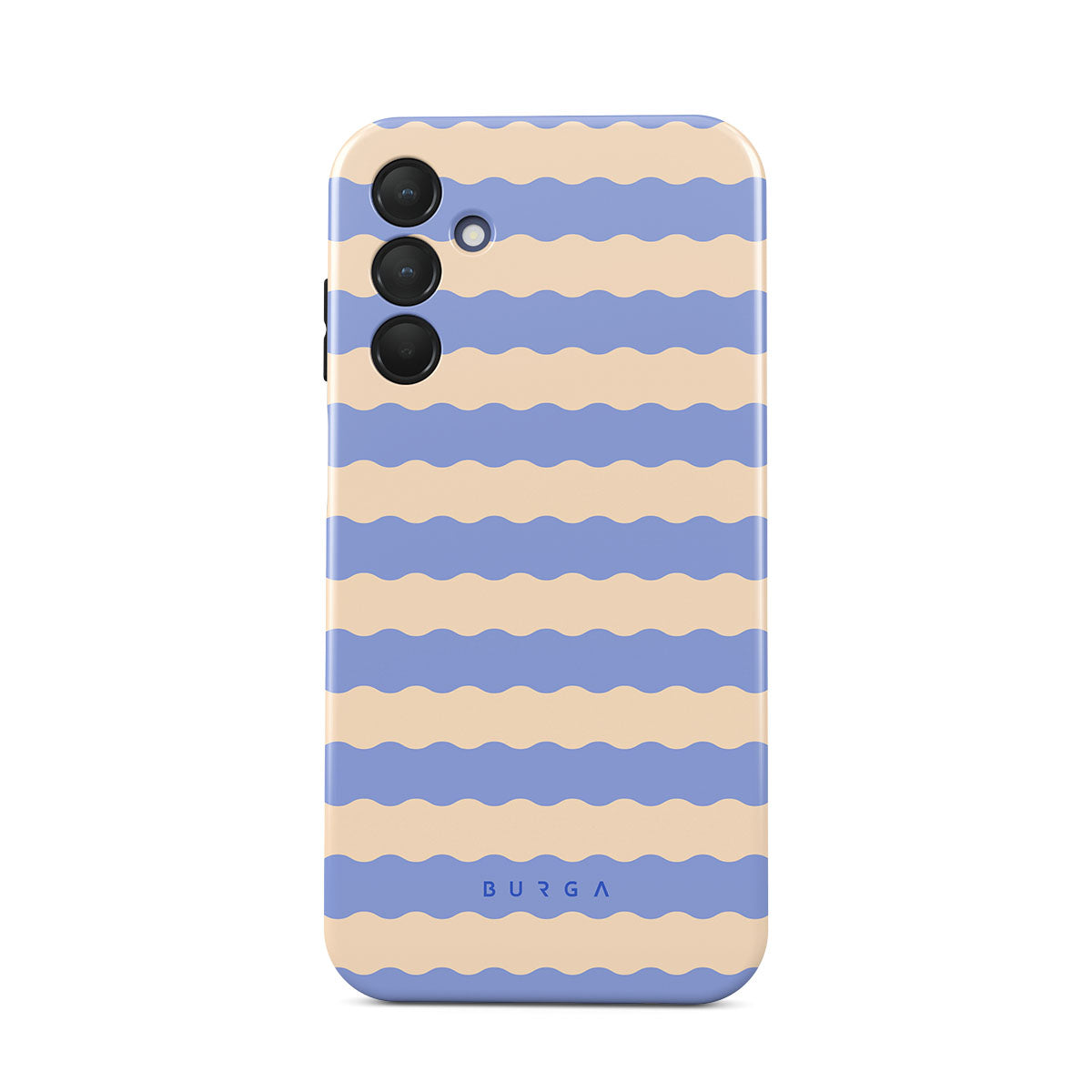 Dive into the cool, refreshing style of our Splash design–a dynamic Samsung Galaxy A15 4G / 5G phone case featuring playful, wavy stripes of serene ocean blue and soft sandy beige. Perfect for those who love to make a splash with their accessories.