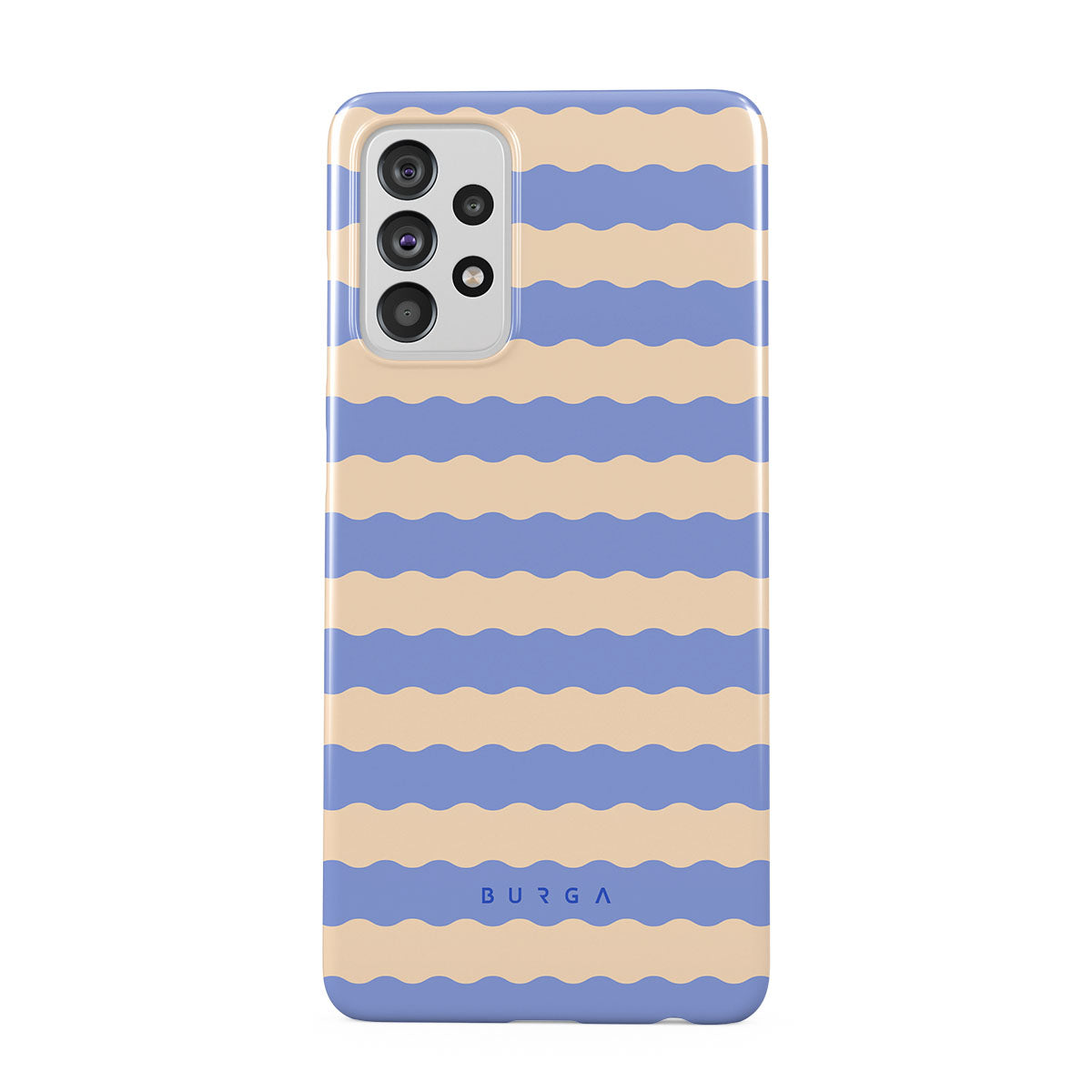 Dive into the cool, refreshing style of our Splash design–a dynamic Samsung Galaxy A72 4G / 5G phone case featuring playful, wavy stripes of serene ocean blue and soft sandy beige. Perfect for those who love to make a splash with their accessories.