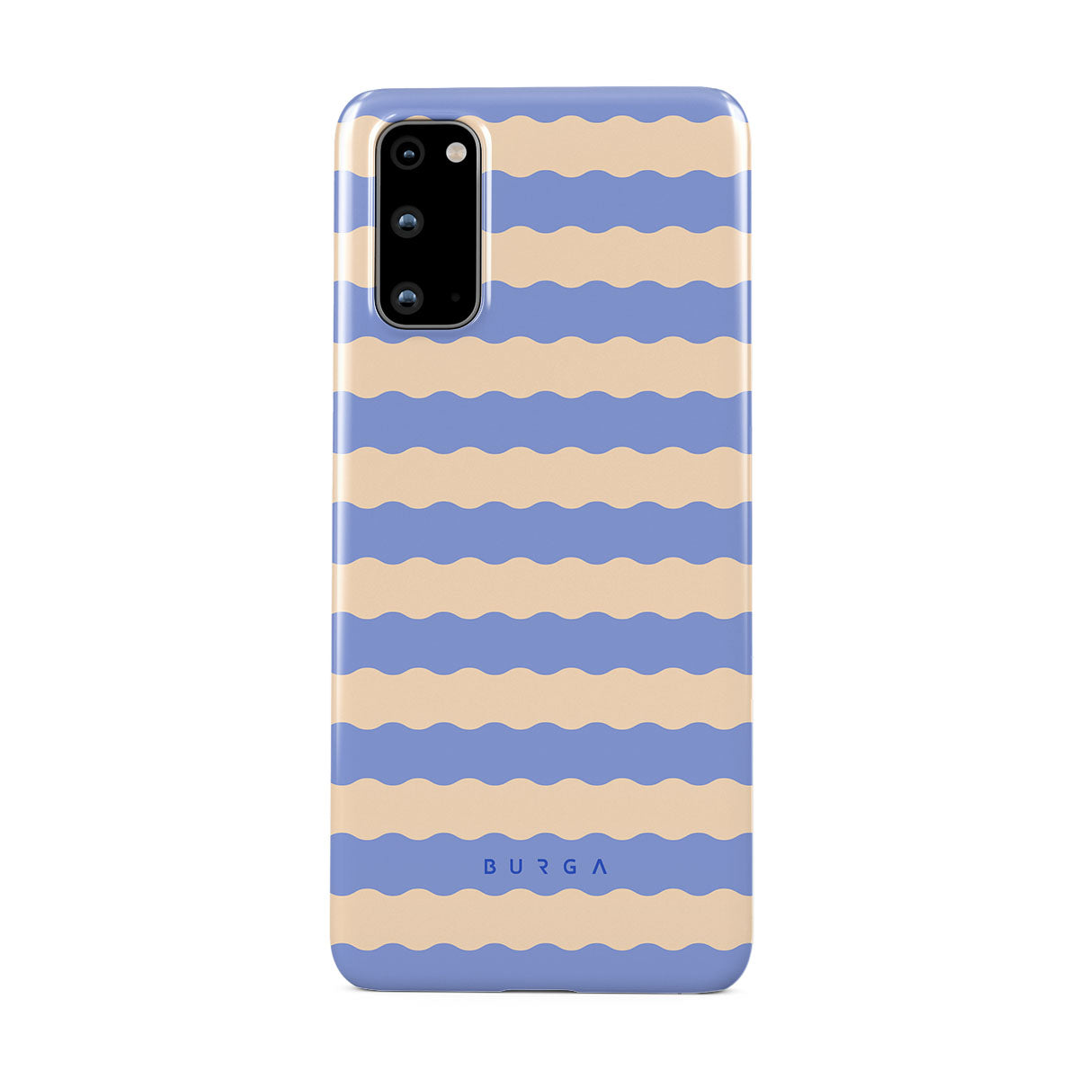 Dive into the cool, refreshing style of our Splash design–a dynamic Samsung Galaxy S20 4G / 5G phone case featuring playful, wavy stripes of serene ocean blue and soft sandy beige. Perfect for those who love to make a splash with their accessories.
