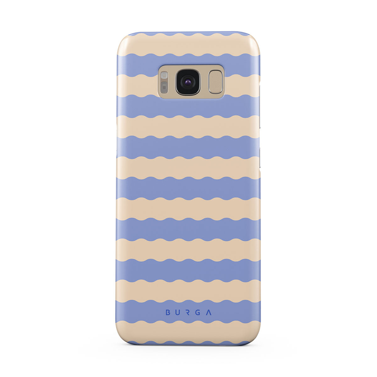 Dive into the cool, refreshing style of our Splash design–a dynamic Samsung Galaxy S8 phone case featuring playful, wavy stripes of serene ocean blue and soft sandy beige. Perfect for those who love to make a splash with their accessories.