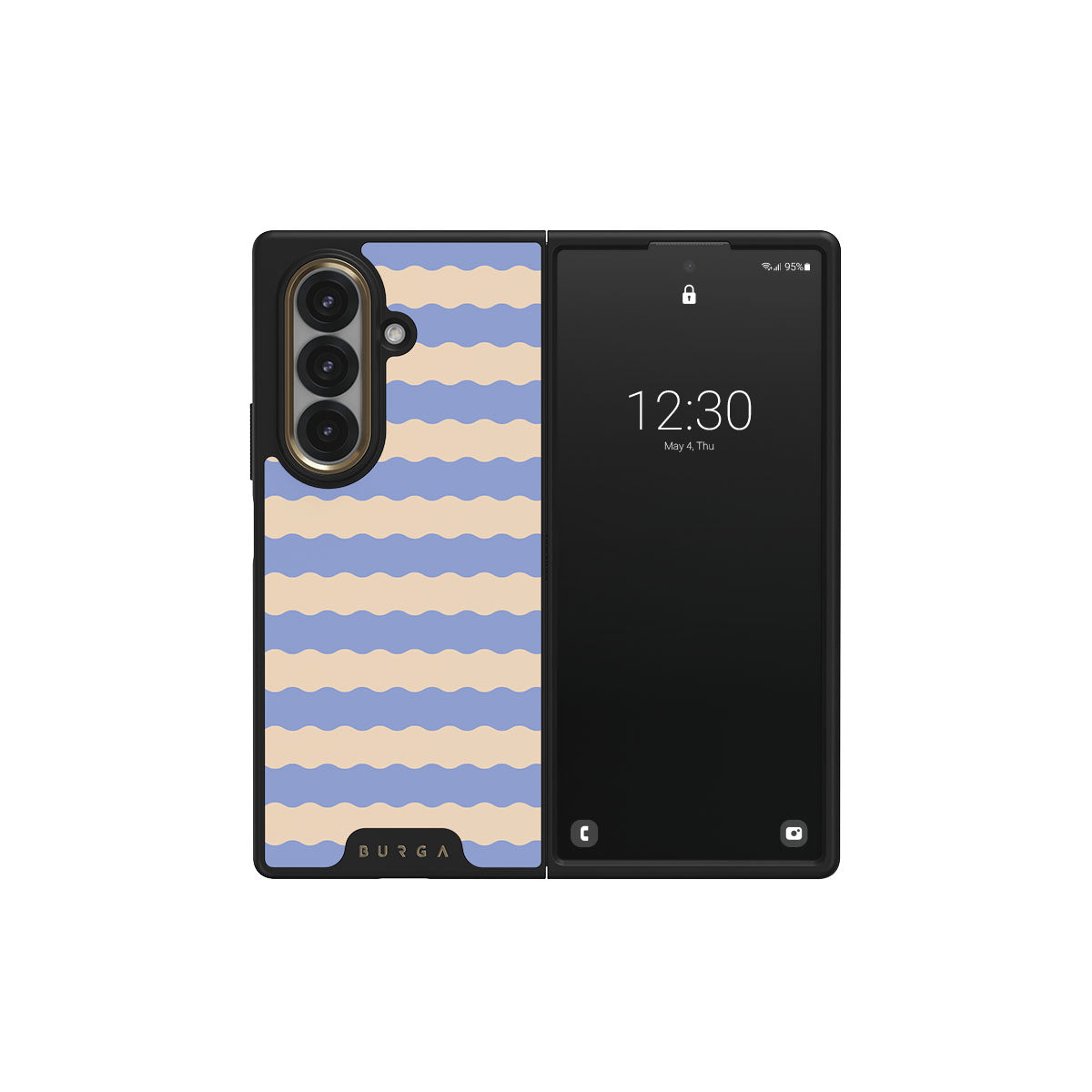 Dive into the cool, refreshing style of our Splash design–a dynamic Samsung Galaxy Z Fold 7 phone case featuring playful, wavy stripes of serene ocean blue and soft sandy beige. Perfect for those who love to make a splash with their accessories.