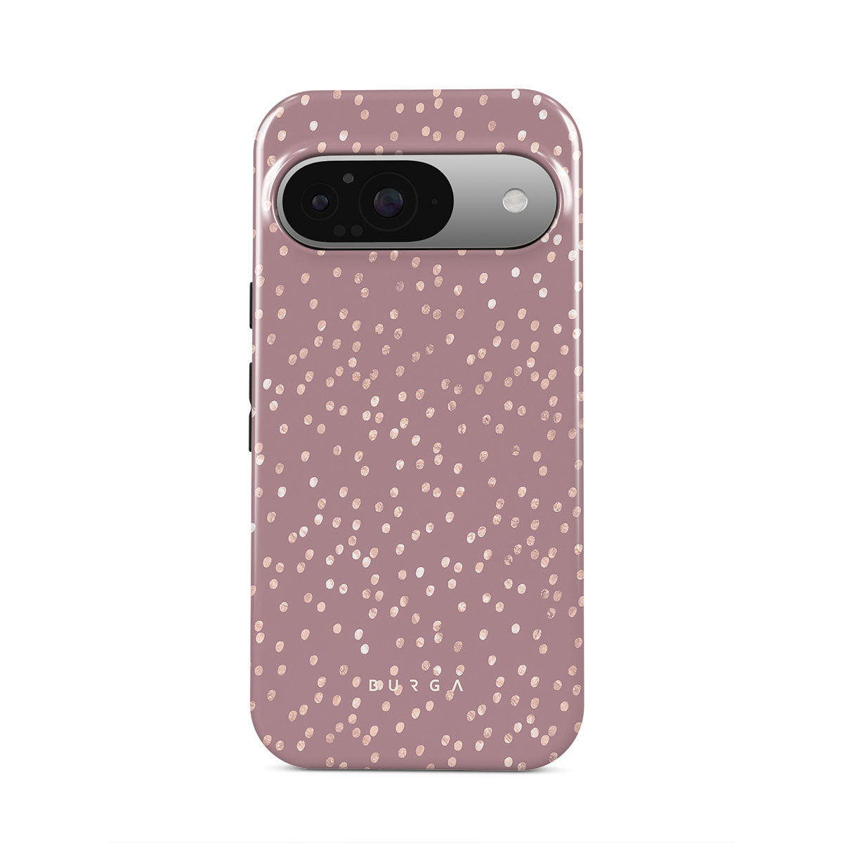 Trendy mauve color as a background for the gold-colored spots creates true beauty. Make your Google Pixel 9 stand out with our protective and pretty Hot Cocoa phone case. The spotted pattern adds a touch of luxury to your phone, while the case's hard-shell nature offers much-needed protection.