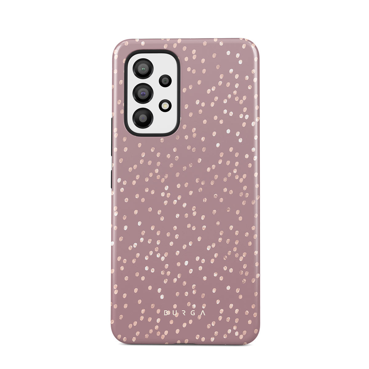 Trendy mauve color as a background for the gold-colored spots creates true beauty. Make your Samsung Galaxy A23 4G / 5G stand out with our protective and pretty Hot Cocoa phone case. The spotted pattern adds a touch of luxury to your phone, while the case's hard-shell nature offers much-needed protection.