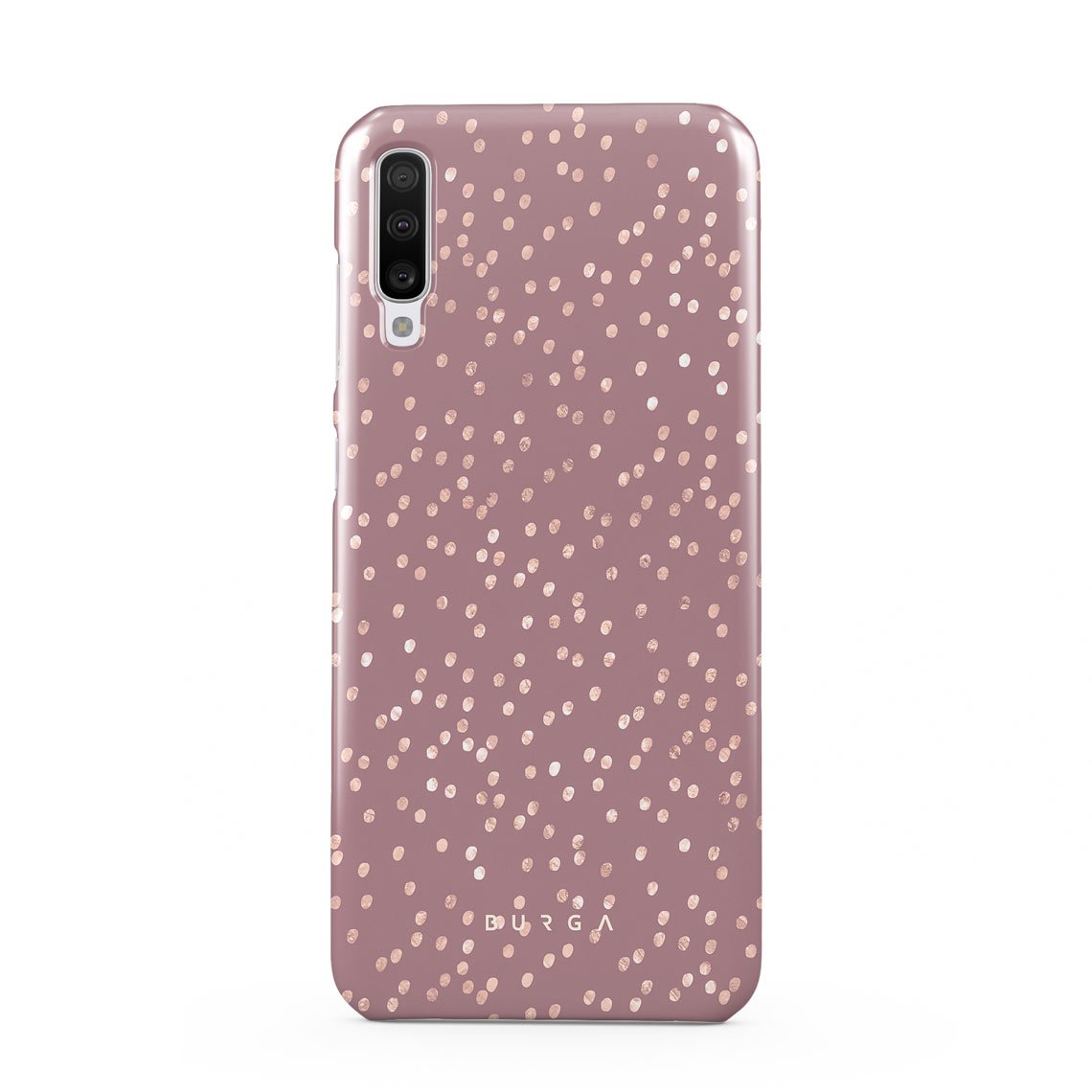 Trendy mauve color as a background for the gold-colored spots creates true beauty. Make your Samsung Galaxy A70 stand out with our protective and pretty Hot Cocoa phone case. The spotted pattern adds a touch of luxury to your phone, while the case's hard-shell nature offers much-needed protection.