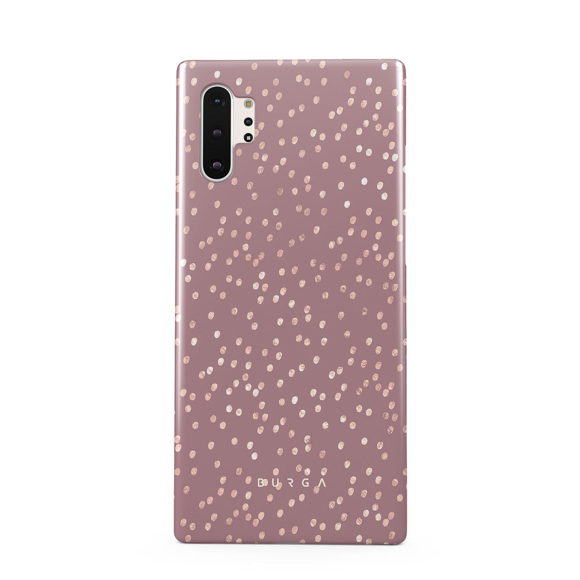 Trendy mauve color as a background for the gold-colored spots creates true beauty. Make your Samsung Galaxy Note 10 Plus stand out with our protective and pretty Hot Cocoa phone case. The spotted pattern adds a touch of luxury to your phone, while the case's hard-shell nature offers much-needed protection.