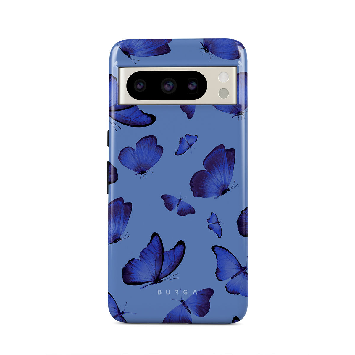 Bright blue butterflies dance across a sky-blue expanse, a visual representation of freedom and transformation. Our Spring Court Google Pixel 8 Pro phone case design symbolizes the soul's eternal dance with change, each flutter a step towards becoming who we are meant to be.