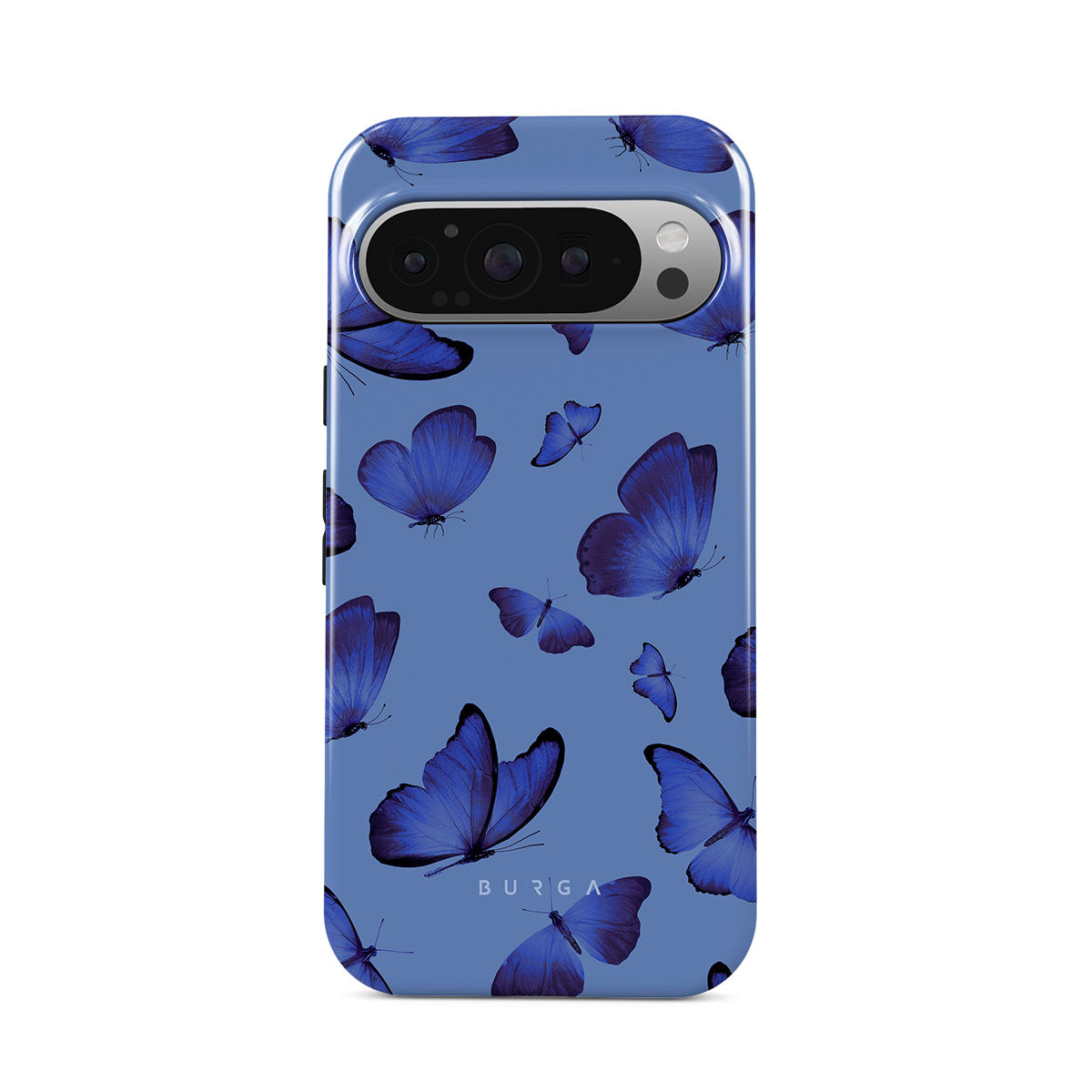 Bright blue butterflies dance across a sky-blue expanse, a visual representation of freedom and transformation. Our Spring Court Google Pixel 9 Pro XL phone case design symbolizes the soul's eternal dance with change, each flutter a step towards becoming who we are meant to be.