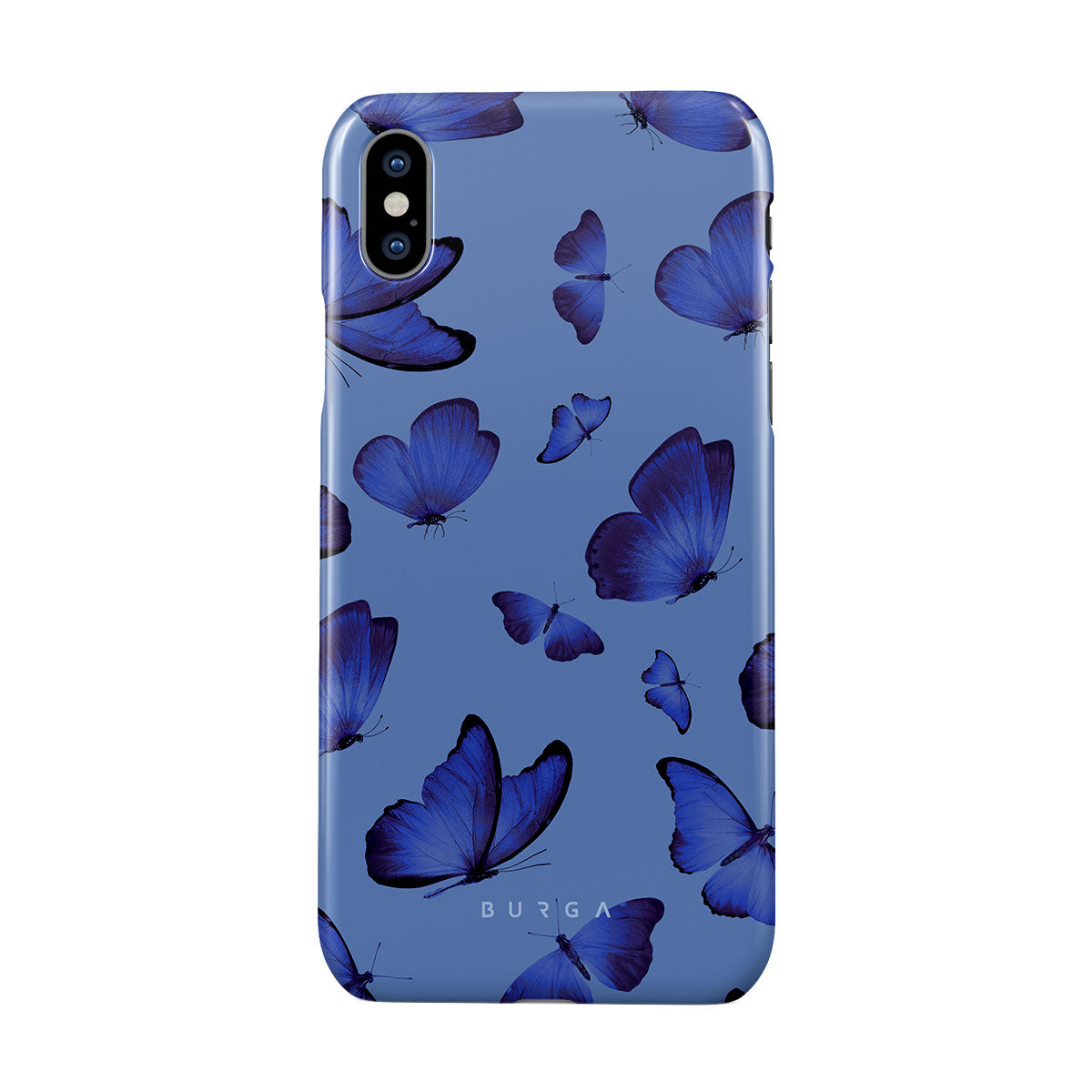 Bright blue butterflies dance across a sky-blue expanse, a visual representation of freedom and transformation. Our Spring Court iPhone XS Max phone case design symbolizes the soul's eternal dance with change, each flutter a step towards becoming who we are meant to be.