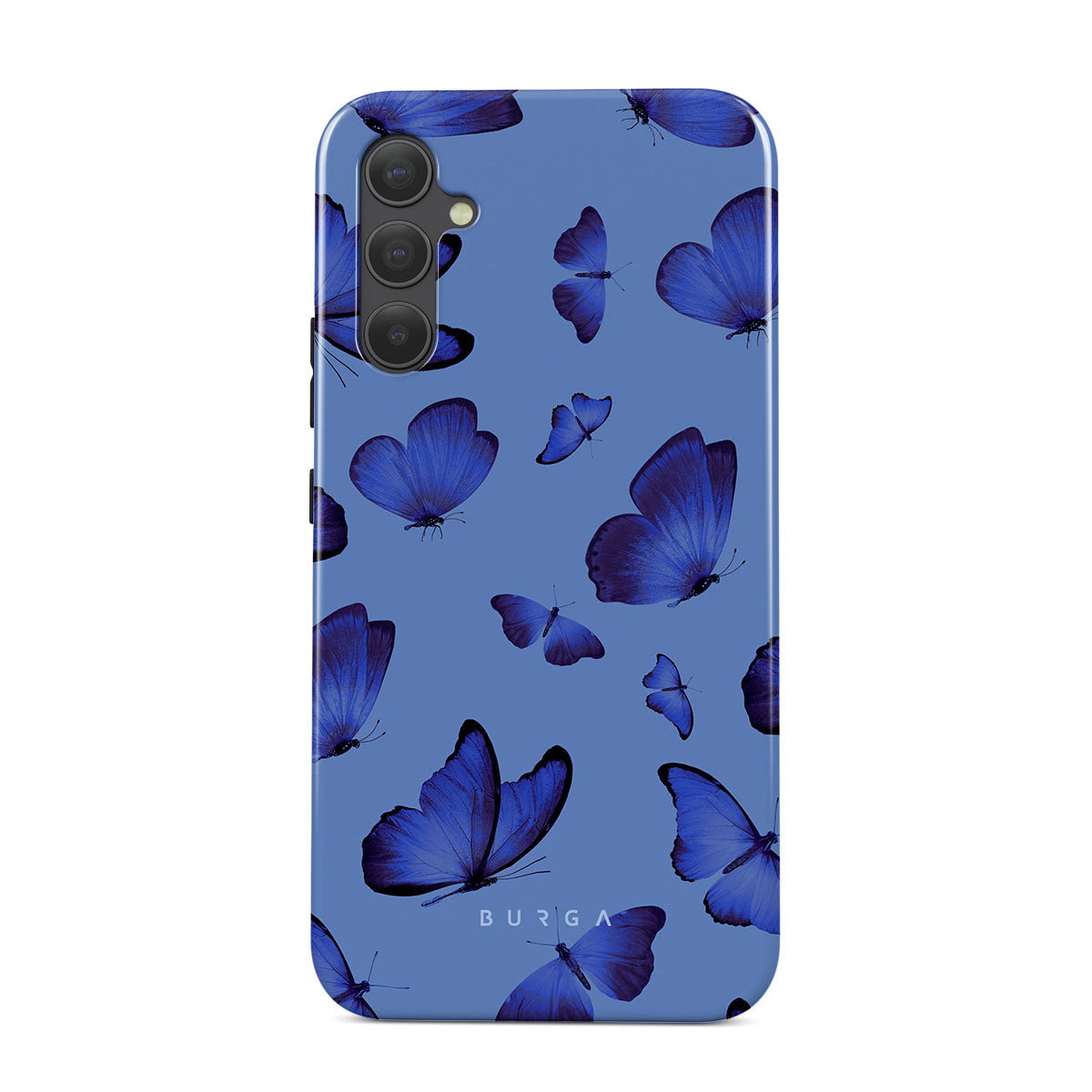 Bright blue butterflies dance across a sky-blue expanse, a visual representation of freedom and transformation. Our Spring Court Samsung Galaxy A34 phone case design symbolizes the soul's eternal dance with change, each flutter a step towards becoming who we are meant to be.